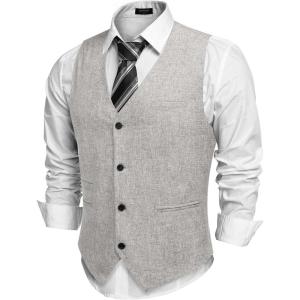 COOFANDY Men’s Casual Business Vests Lightweight Waistcoat Slim Fit Suit Vest(Light Grey)