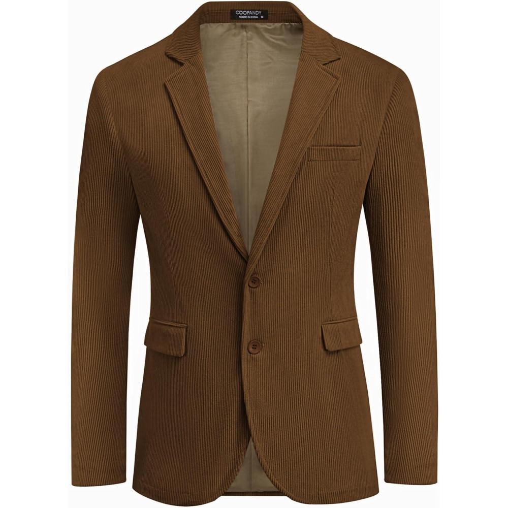 COOFADNY Men’s Casual Corduroy Blazer Classic Fit Two Button Sport Coat Fashion Notch Lapel Blazer Jacket(Brown)