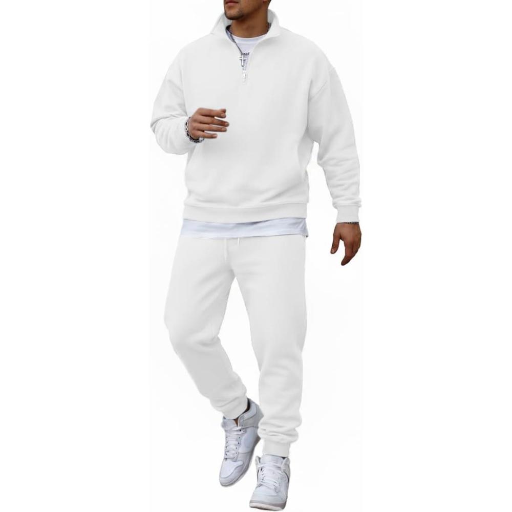 COOFANDY 2 Piece Set for Men Casual 1/4 Zip Track Suits Set Long Sleeve Quarter Pullover Jogging Suits 2025 Fashion Outfits(White)