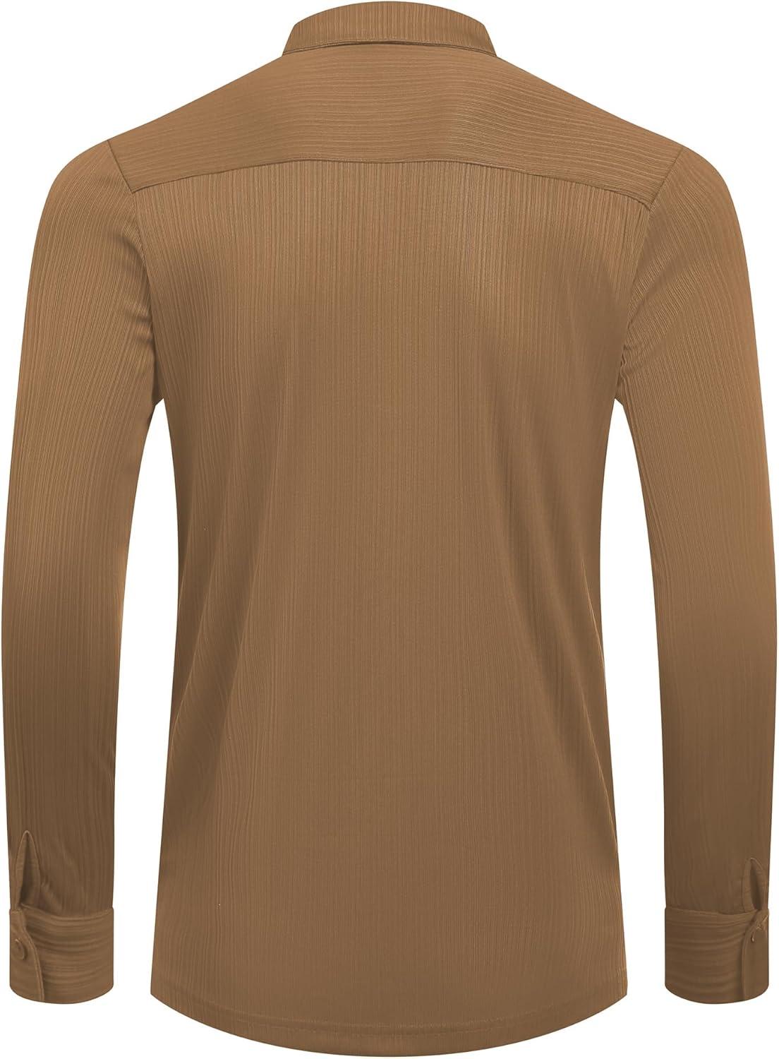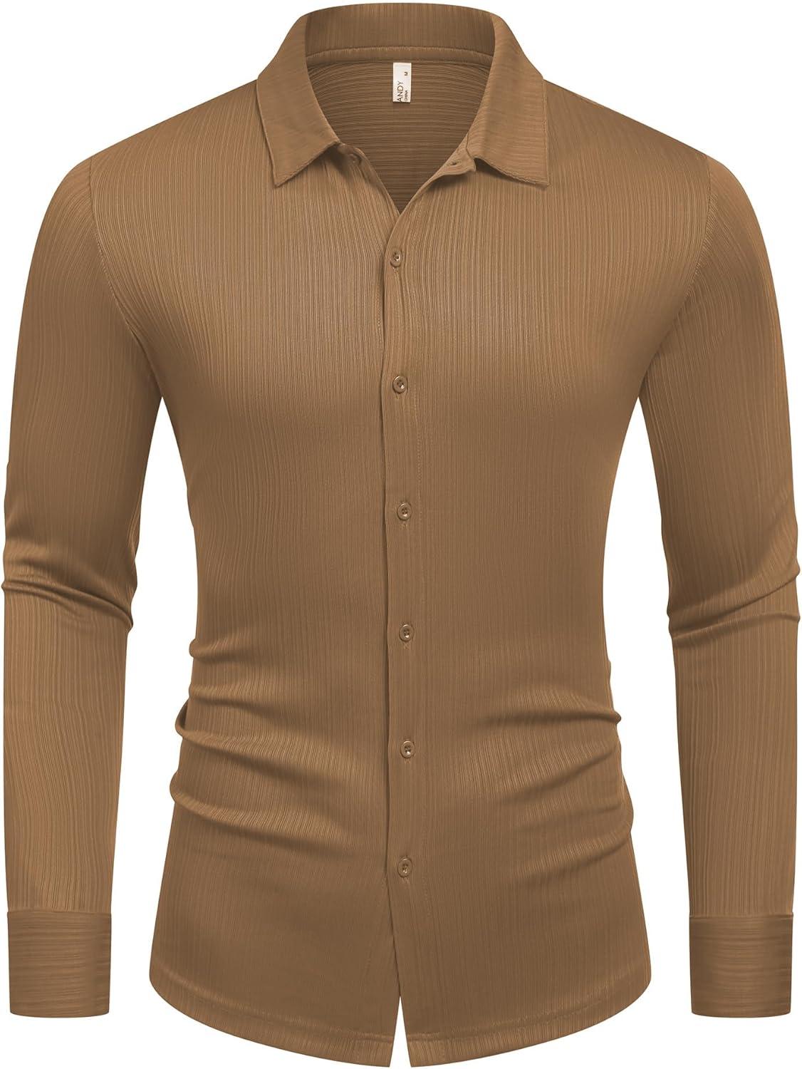 COOFANDY Athletic Fit Dress Shirts for Men Ribbed Knit Textured Button Down Shirts(Light Brown)
