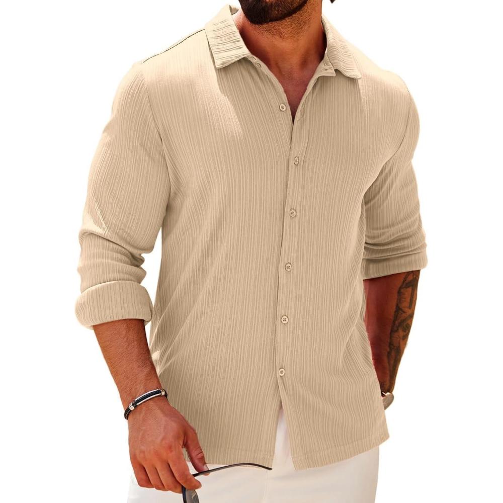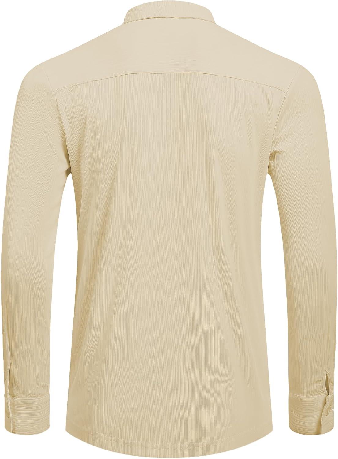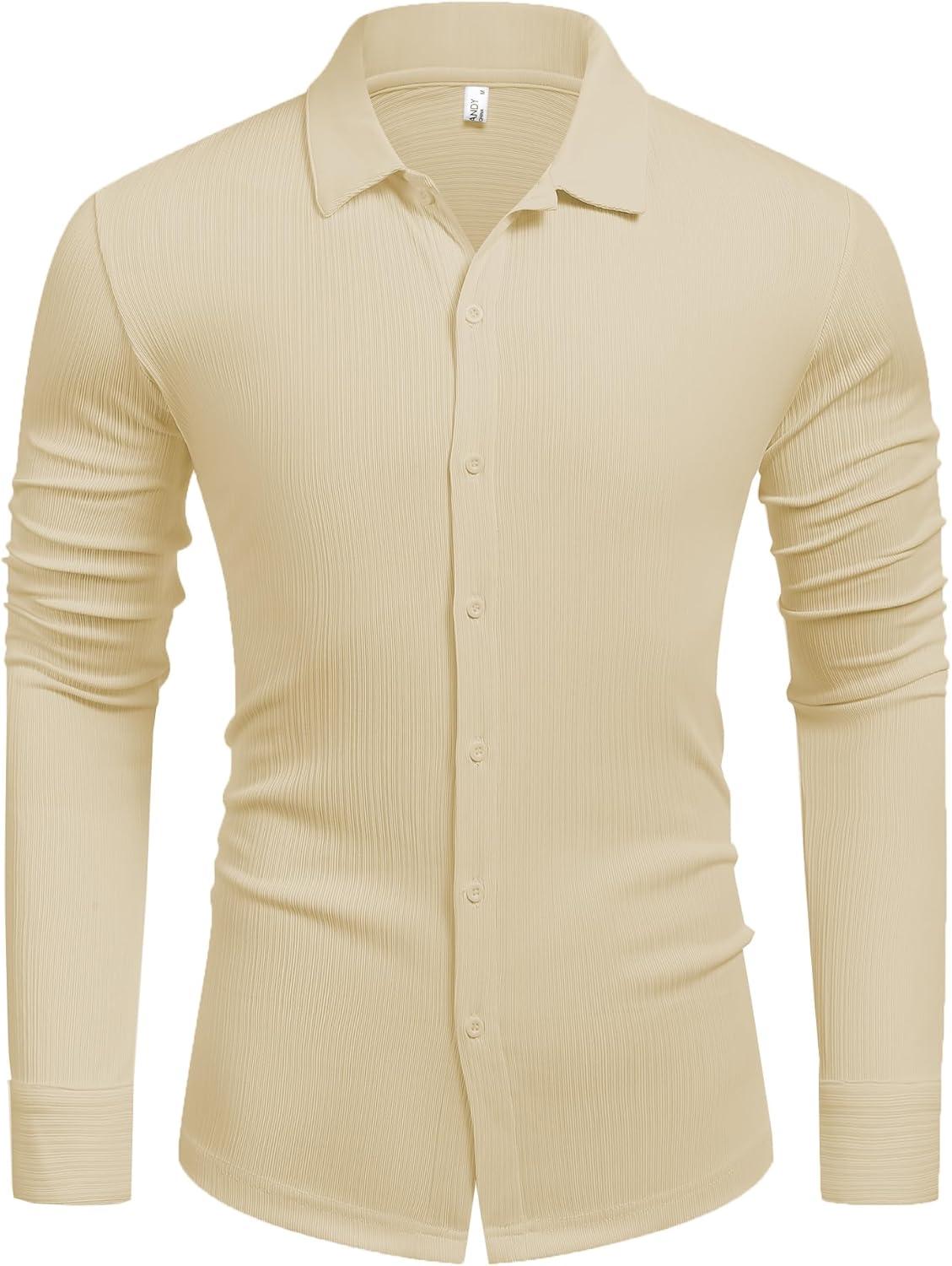COOFANDY Athletic Fit Dress Shirts for Men Ribbed Knit Textured Button Down Shirts(Light Khaki)