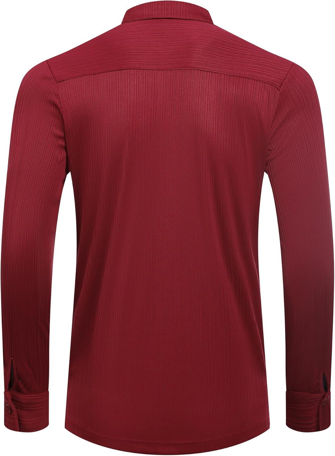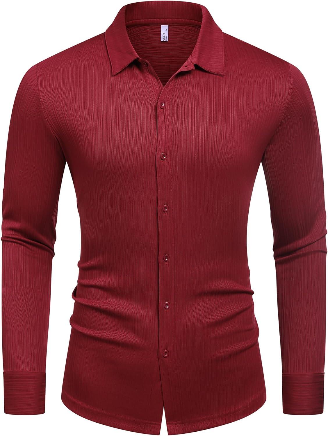 COOFANDY Athletic Fit Dress Shirts for Men Ribbed Knit Textured Button Down Shirts(Wine)