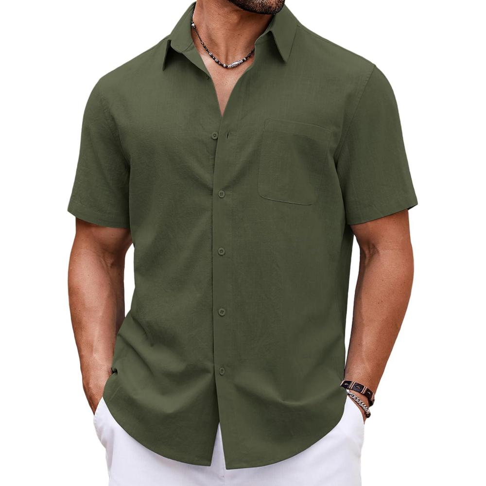 COOFANDY Button Down Shirt for Men Short Sleeve Casual Shirt Summer Beach Vacation Shirt with Pocket(Dark Army Green)