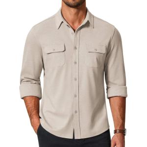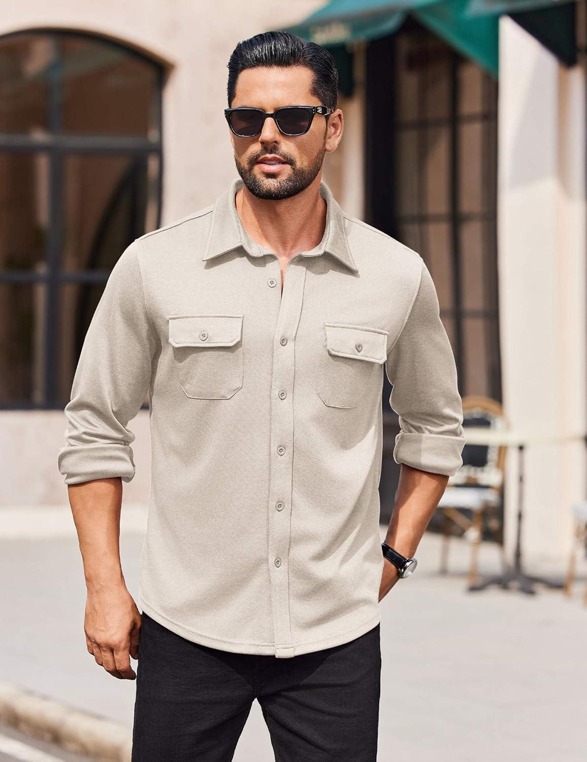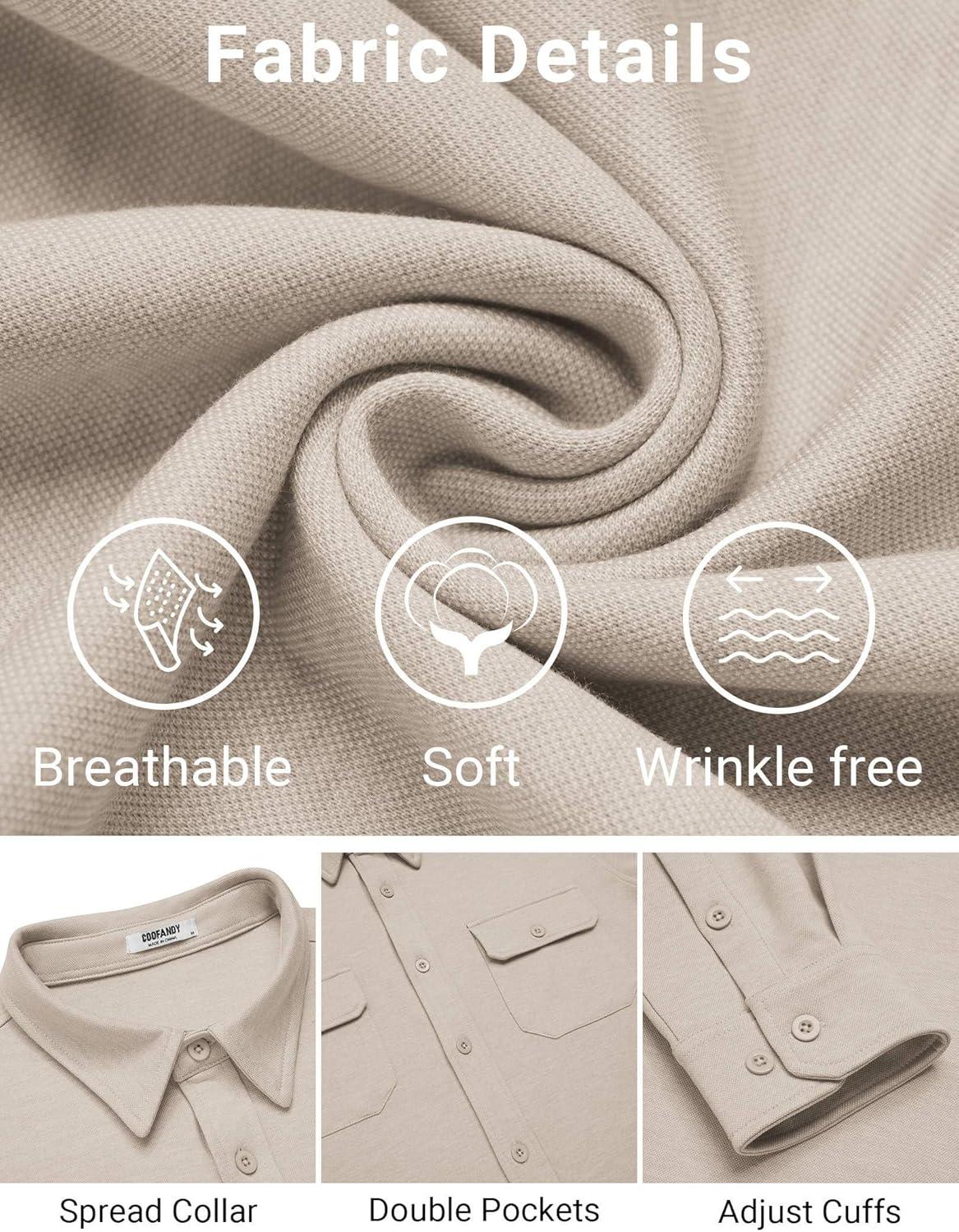 COOFANDY Button Down Shirt for Men Short Sleeve Casual Shirt Summer Beach Vacation Shirt with Pocket(Pink)