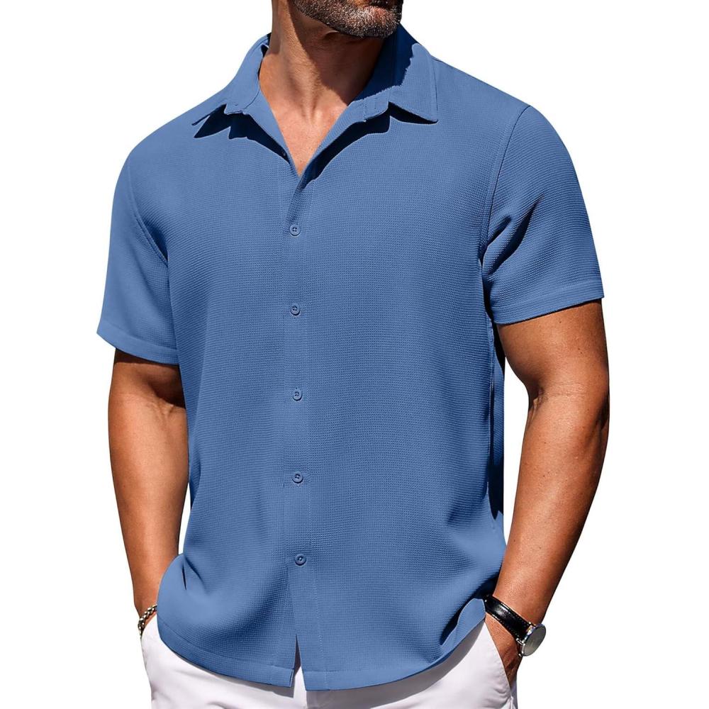COOFANDY Button Down Short Sleeve Summer Casual Beach Shirts Shirt(Dark Blue)