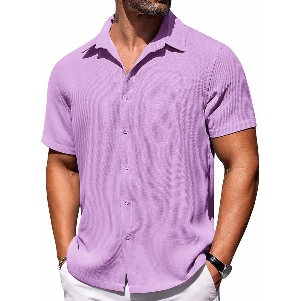 COOFANDY Button Down Short Sleeve Summer Casual Beach Shirts Shirt(Light Purple)