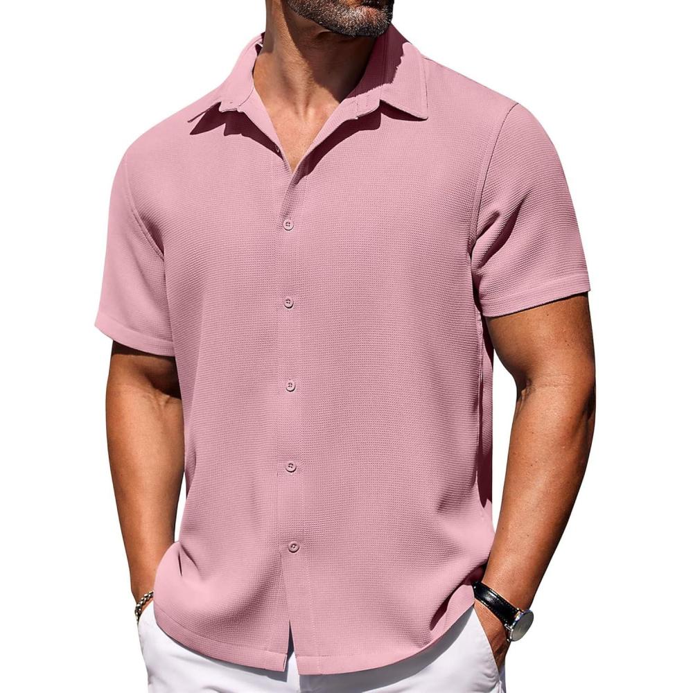 COOFANDY Button Down Short Sleeve Summer Casual Beach Shirts Shirt(Pink)