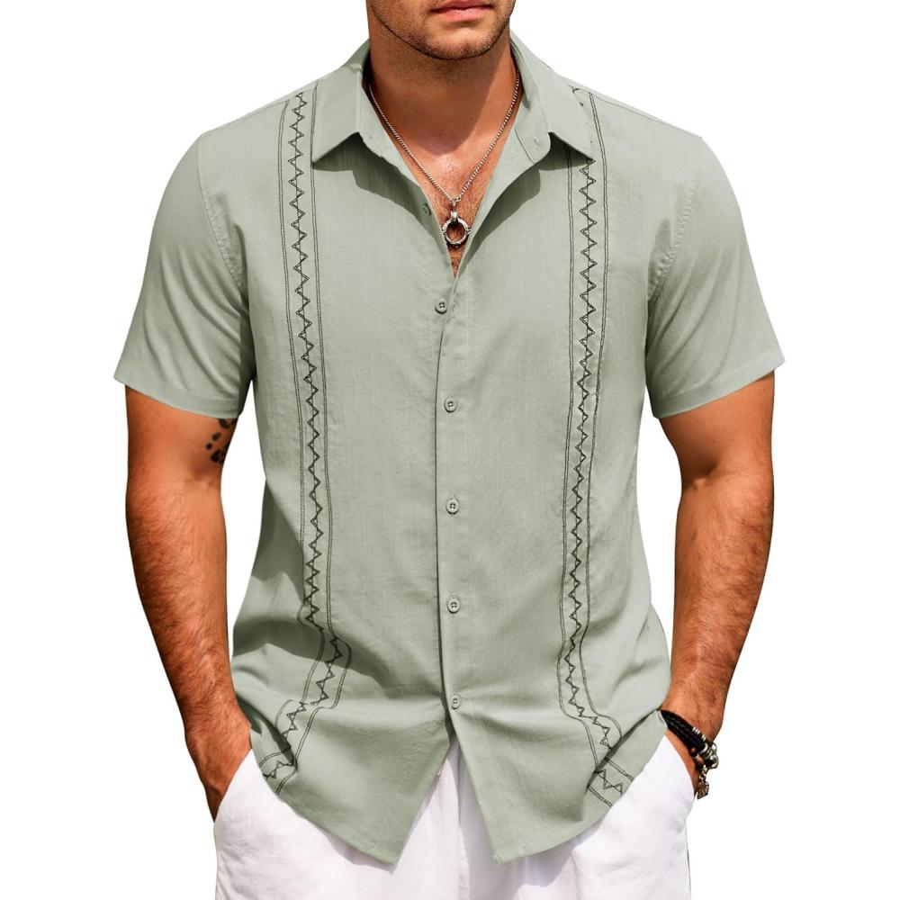 COOFANDY Cuban Guayabera Shirts for Men Short Sleeve Casual Button Down Shirts Summer Vacation Shirts(Sage Green)