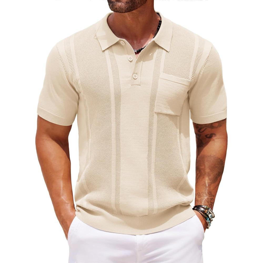 COOFANDY Knit Polo Shirts for Men Short Sleeve Textured Polo Shirt Slim Fit Summer Collared T Shirt with Pocket(Cream)