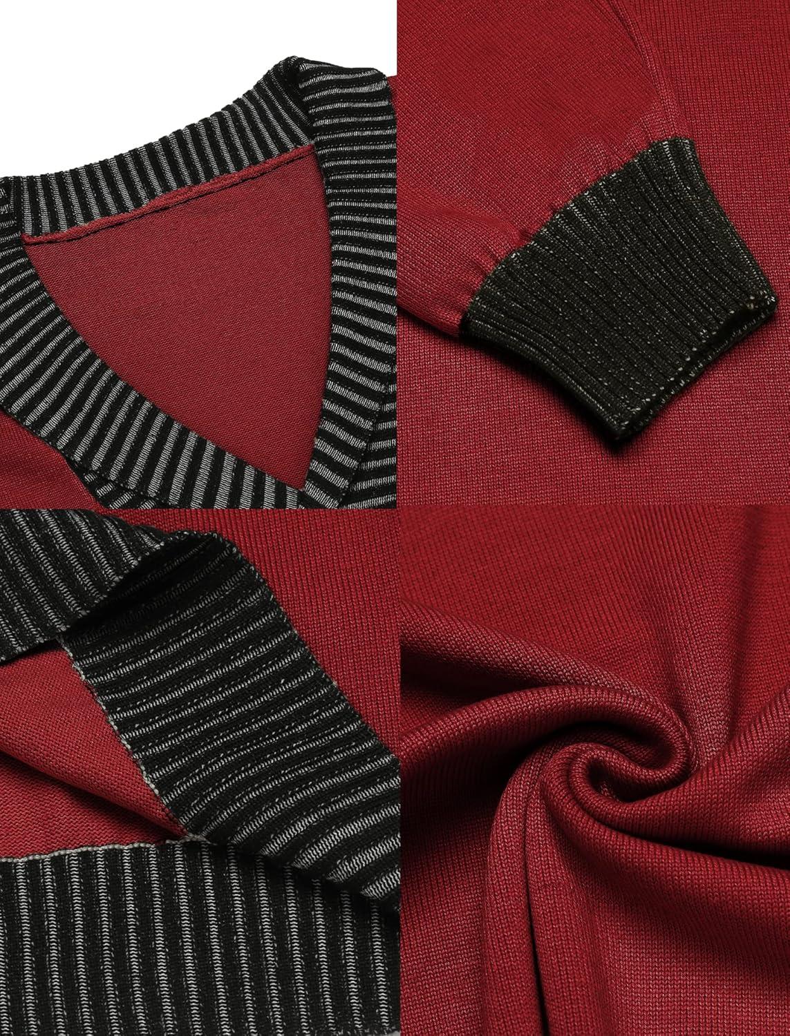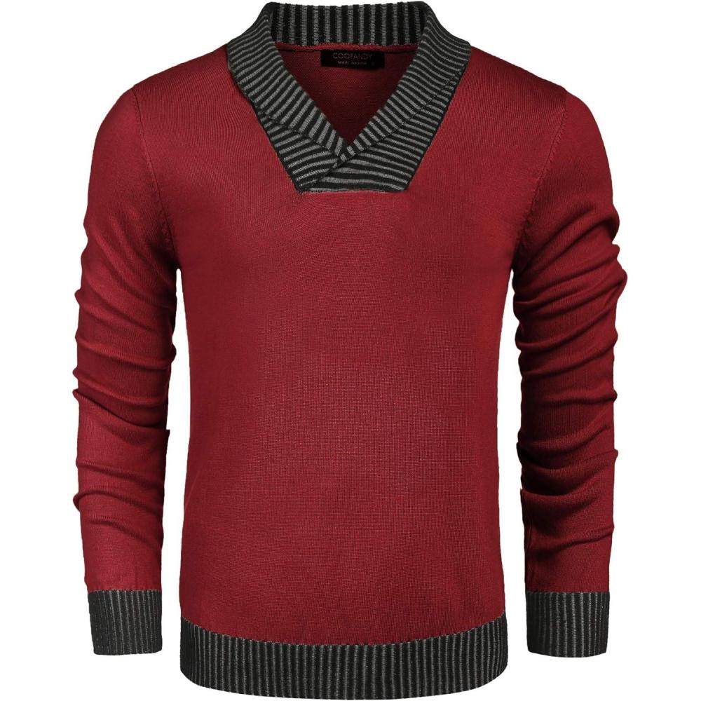 COOFANDY Men Casual Knitted Sweaters Shawl Collar Dress Sweater Long Sleeve V-Neck Pullover Tops(Red)