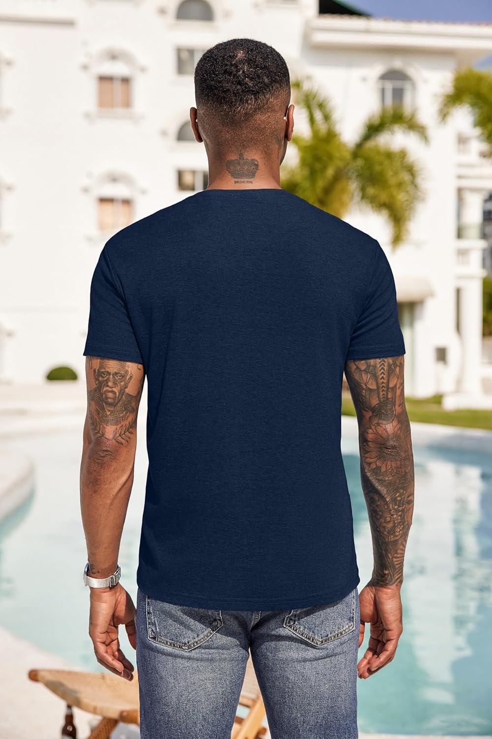 COOFANDY Men Casual Shirt Short Sleeve Summer Basic T Shirt Pocket Soild Tee Top(Dark Blue)