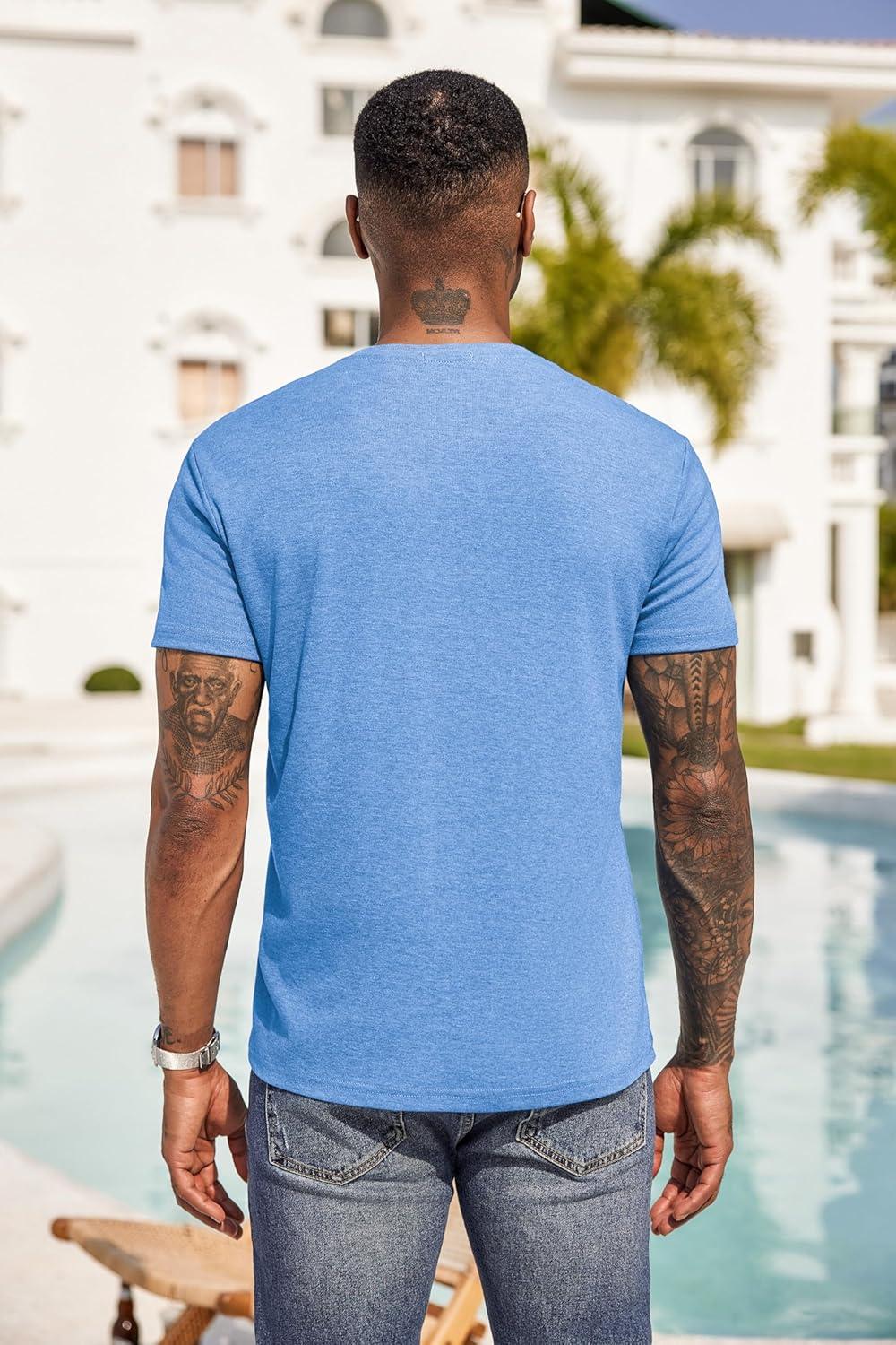COOFANDY Men Casual Shirt Short Sleeve Summer Basic T Shirt Pocket Soild Tee Top(Lightblue)