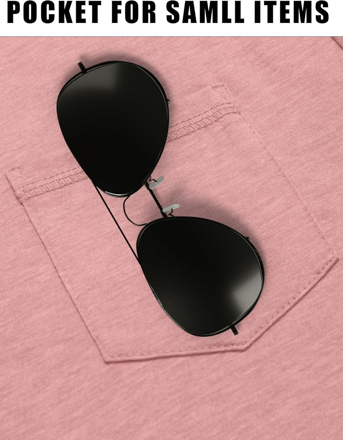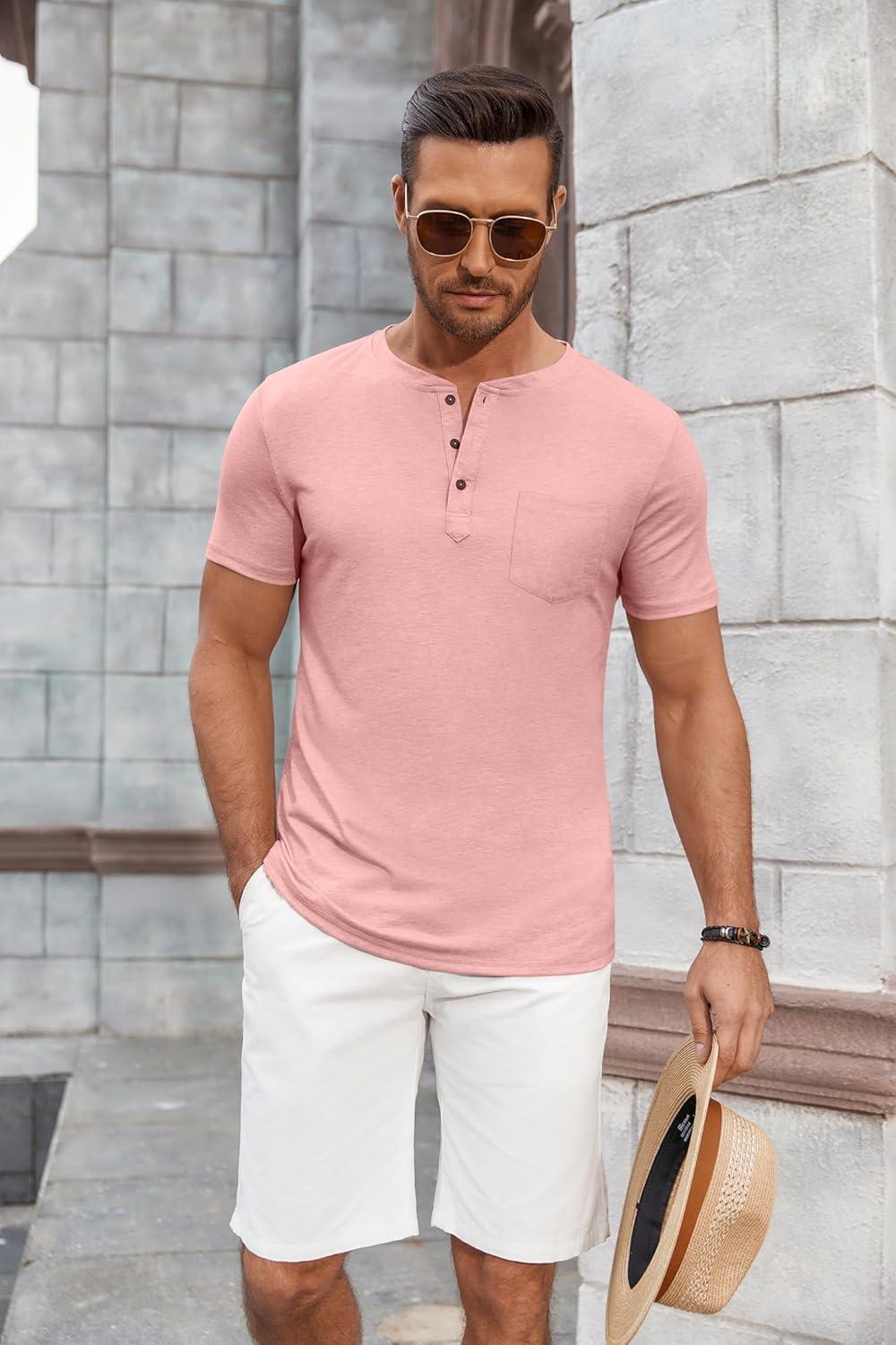 COOFANDY Men Casual Shirt Short Sleeve Summer Basic T Shirt Pocket Soild Tee Top(Pink)