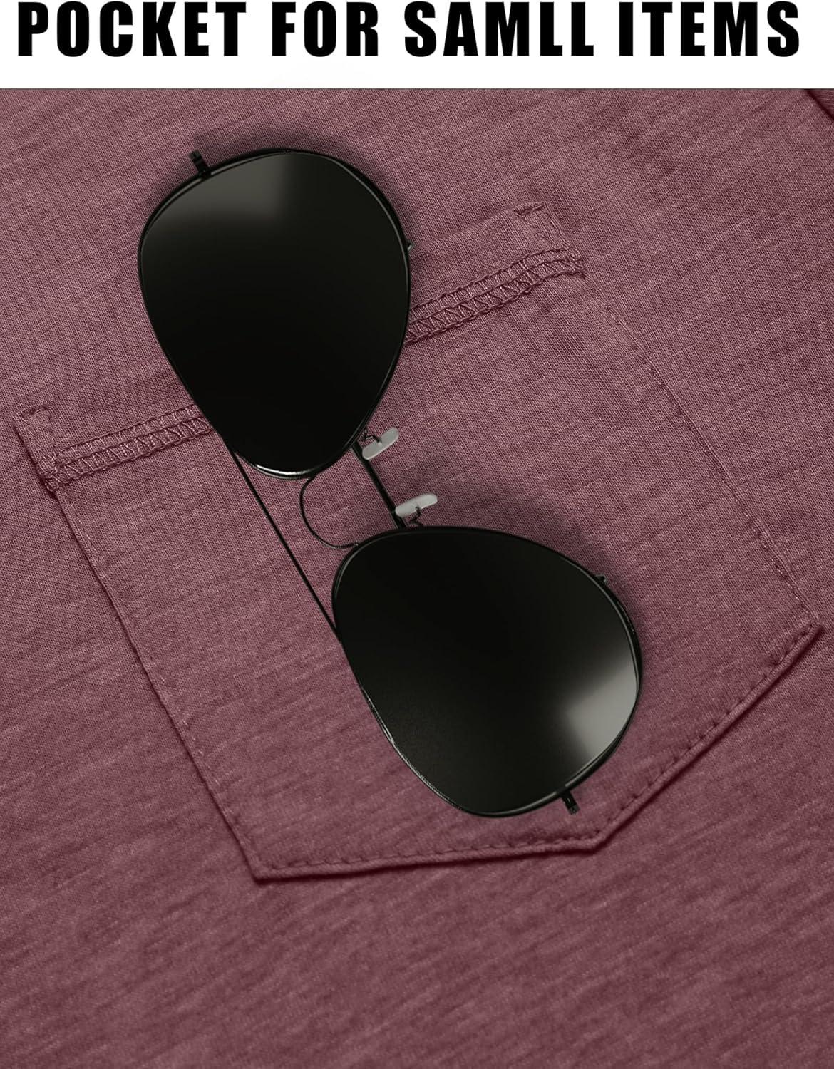 COOFANDY Men Casual Shirt Short Sleeve Summer Basic T Shirt Pocket Soild Tee Top(Wine Red)