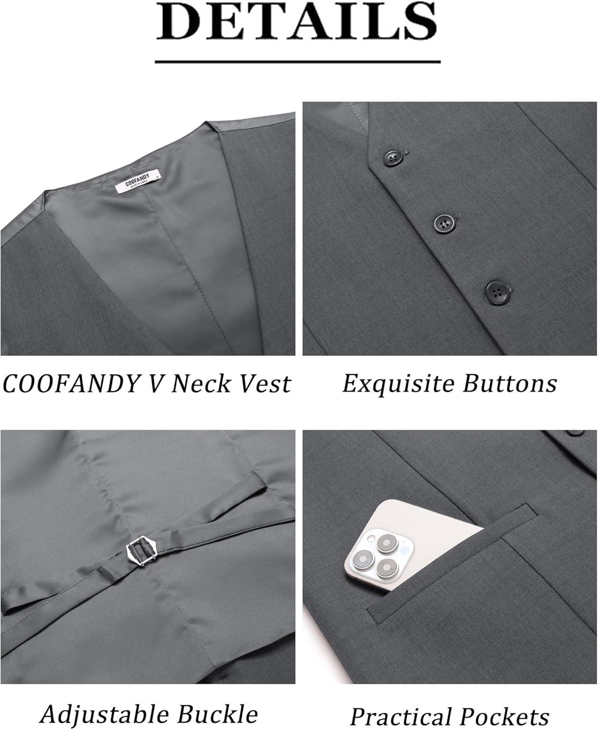 COOFANDY Men V-Neck Suit Dress Vest Fashion Button up Waistcoat with Pockets