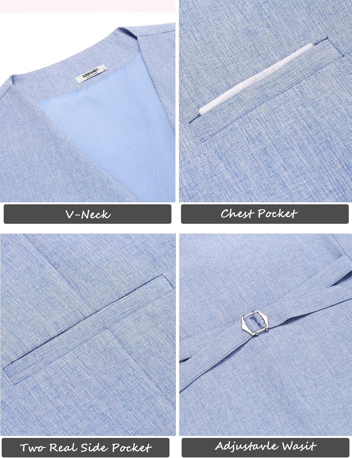 COOFANDY Men Casual Suit Vest Formal Dress Vest Slim Fit Waistcoat Business Wedding(Light Blue)