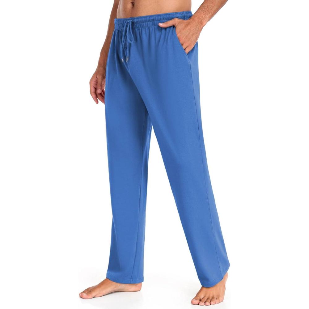 COOFANDY Men Cotton Yoga Pants Casual Sweatpants Jogger Open Bottom Lounge Pants with Pockets(Blue)