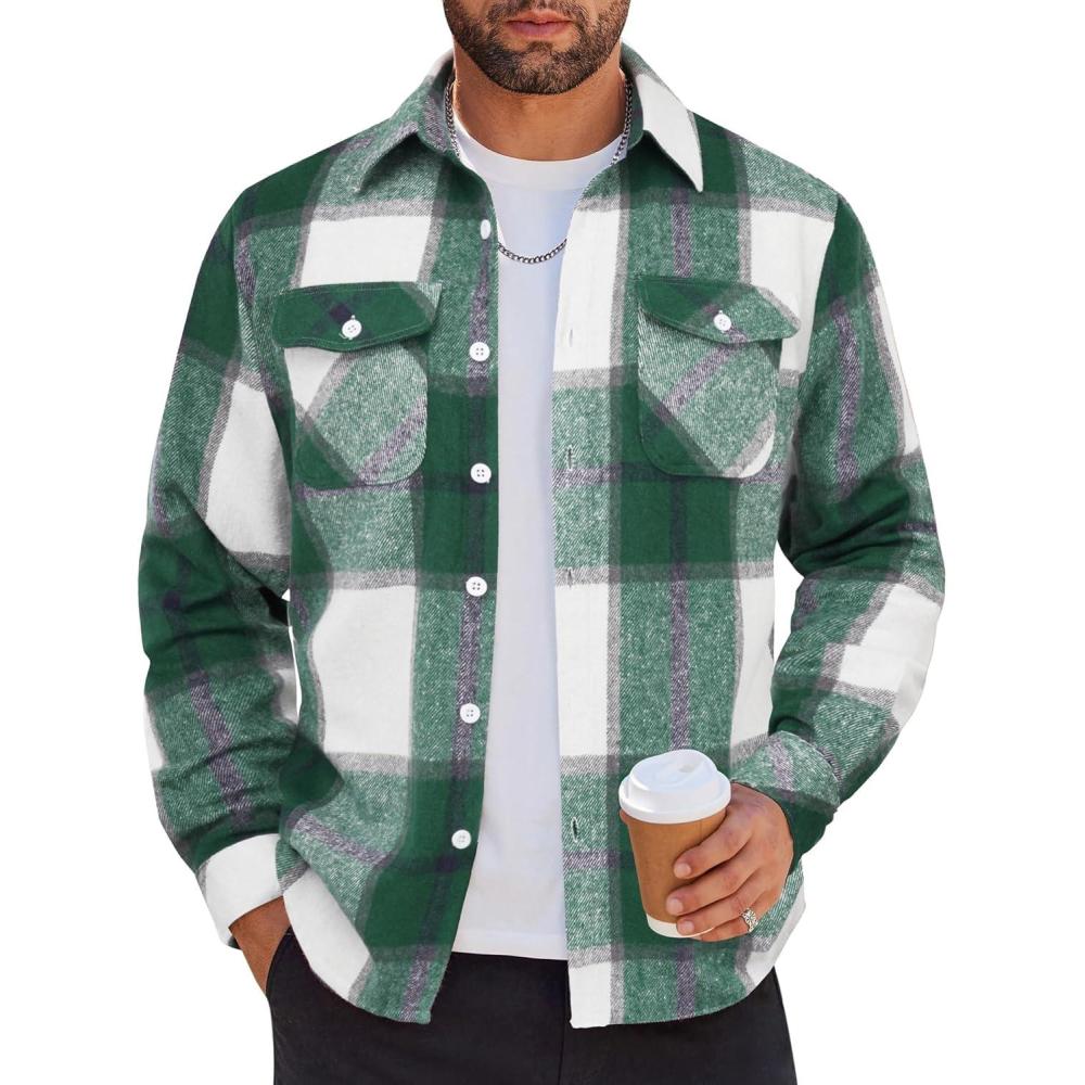 COOFANDY Men Flannel Shirt Casual Button Down Shirt Jacket Long Sleeve Plaid Shirts with Pockets(Green)