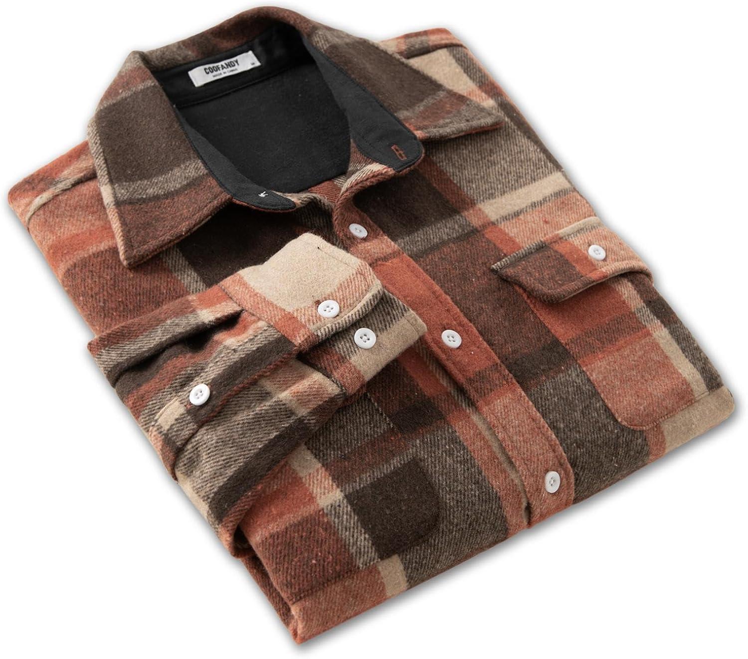 COOFANDY Men Flannel Shirt Casual Button Down Shirt Jacket Long Sleeve Plaid Shirts with Pockets(Orange Red)