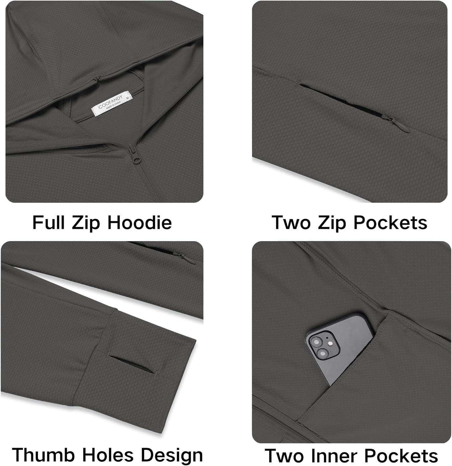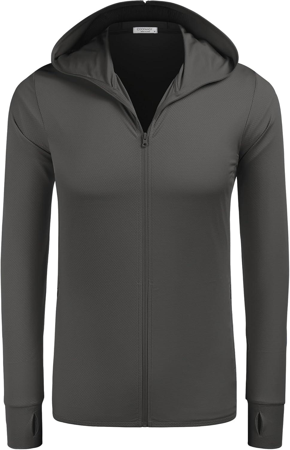 COOFANDY Men Full Zip UPF 50 Sun Protection Hoodie Jacket Long Sleeve Lightweight Breathable UV Shirts with Pockets(Dark Grey)