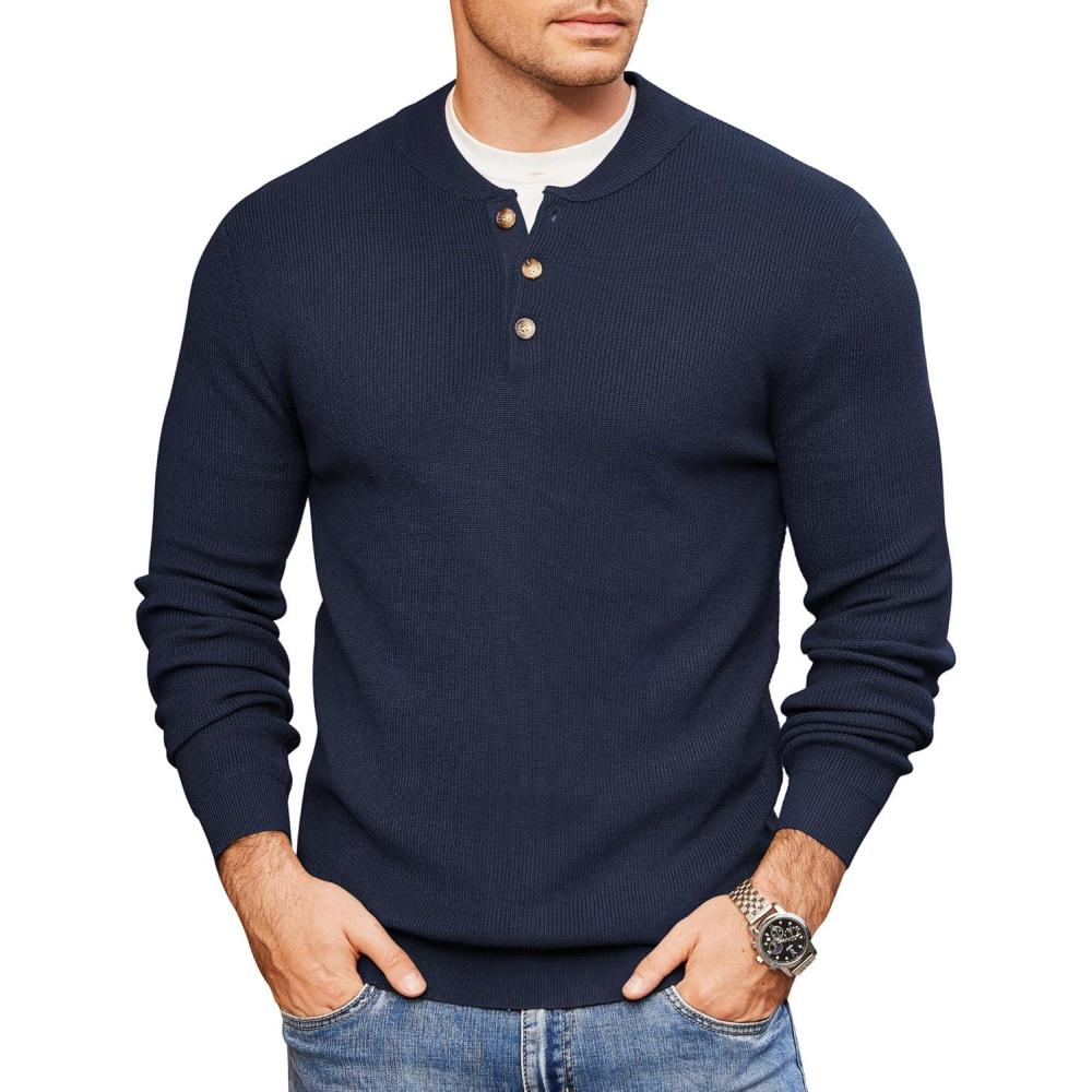 COOFANDY Men Henley Knit Sweater Dress Long Sleeve Button Pullover Sweater Casual Sweater Lightweight Slim Fit Tops(Navy Blue)