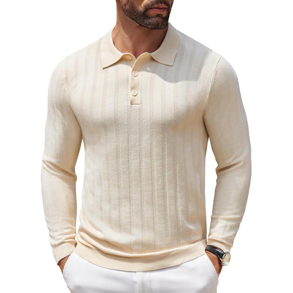 COOFANDY Men Knit Long Sleeve Polo Shirts Casual Dress Collared Sweater Pullover Button Down Golf Polo Shirts(Beige)