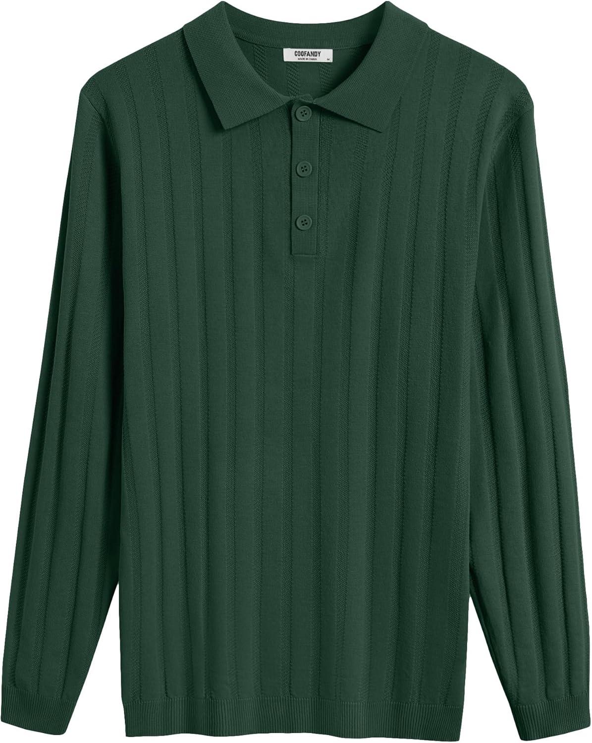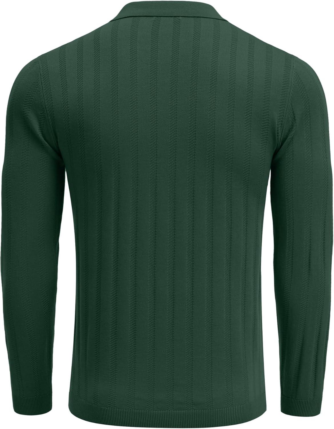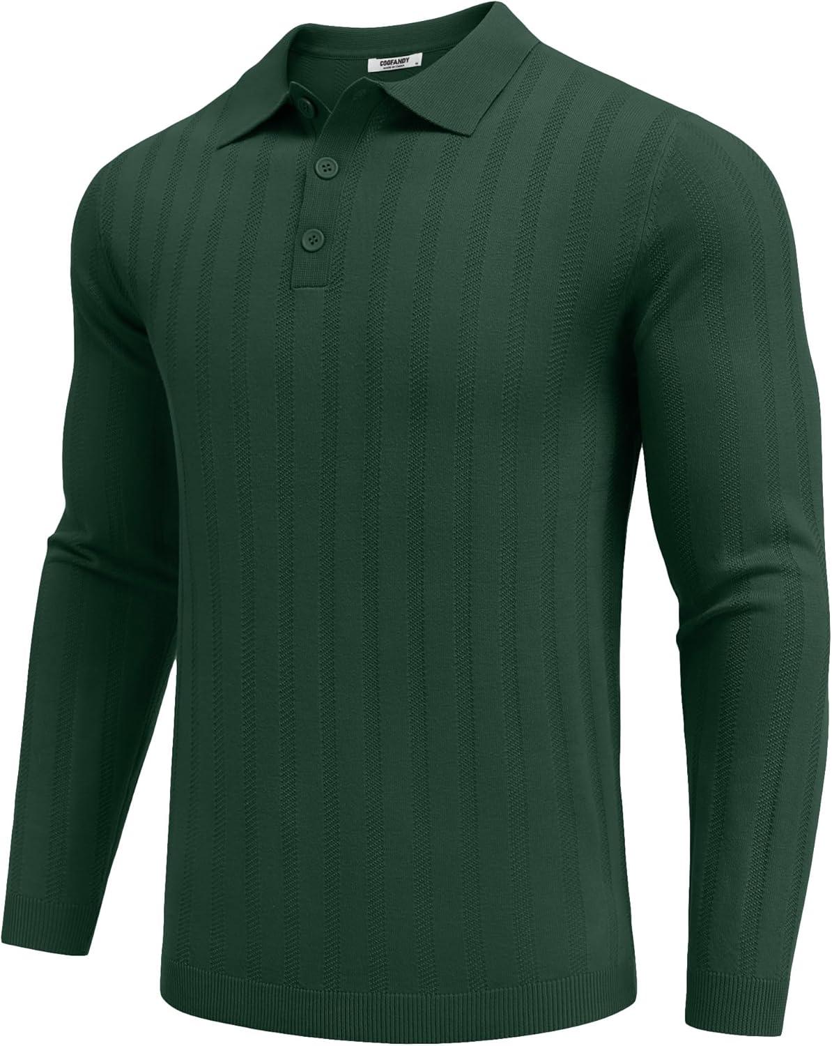 COOFANDY Men Knit Long Sleeve Polo Shirts Casual Dress Collared Sweater Pullover Button Down Golf Polo Shirts(Green)