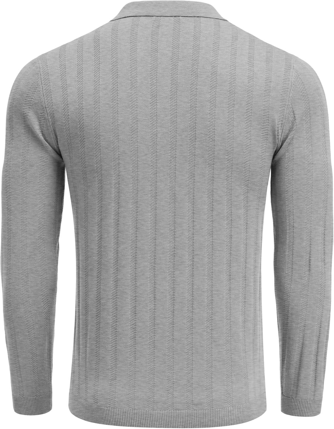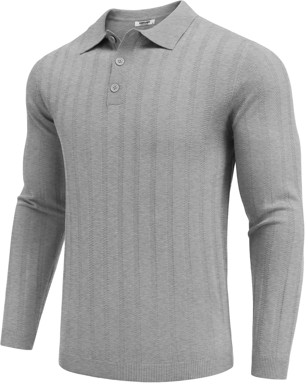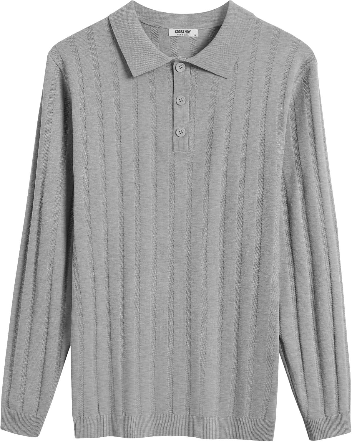 COOFANDY Men Knit Long Sleeve Polo Shirts Casual Dress Collared Sweater Pullover Button Down Golf Polo Shirts(Light Grey)