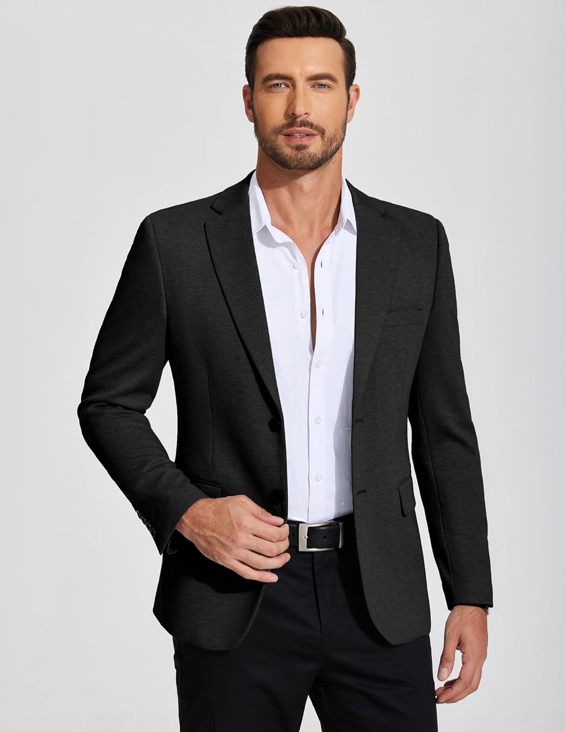 COOFANDY Mens Casual Blazer Knit Sport Coat Lightweight Two Button Suit Jacket(Black)