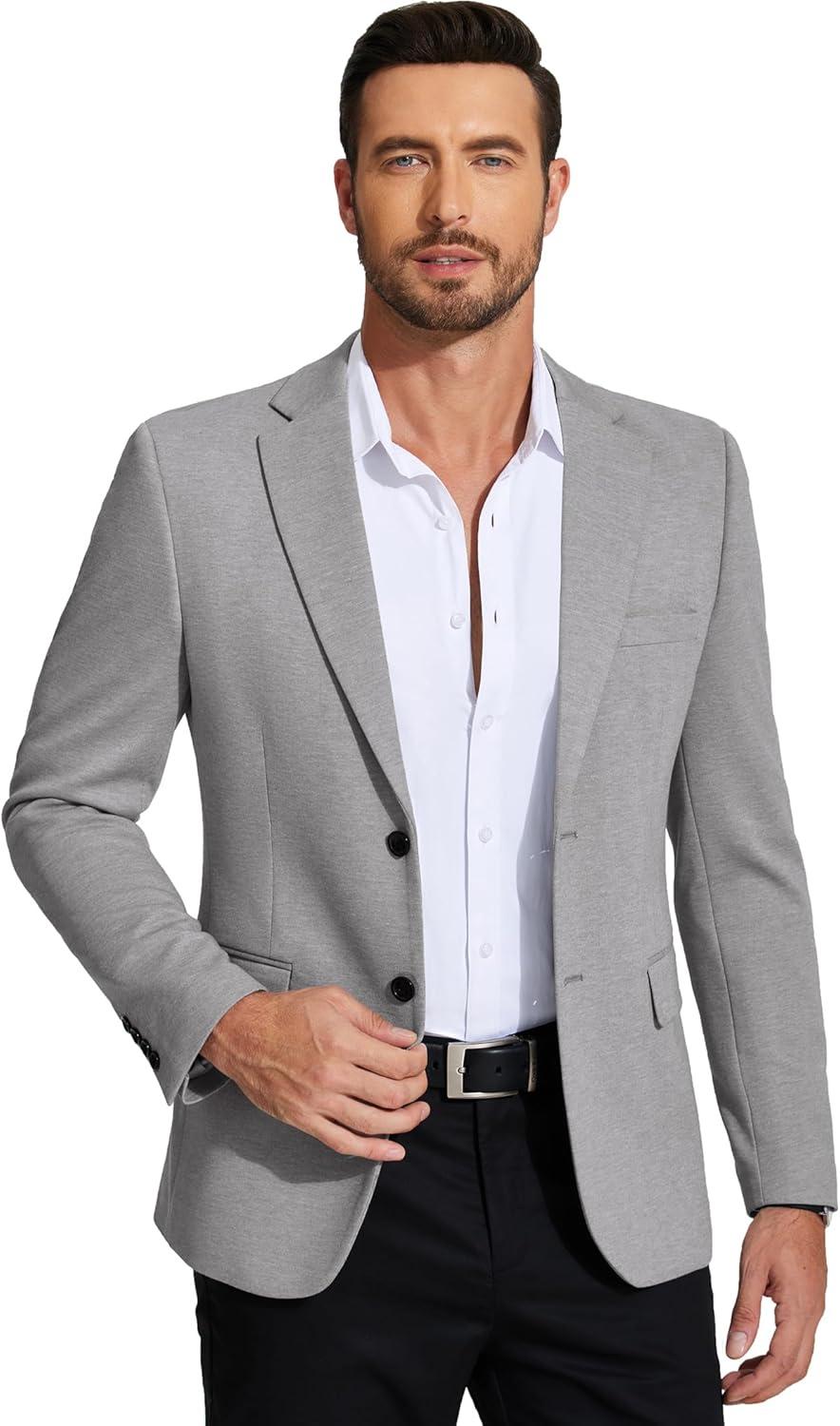COOFANDY Mens Casual Blazer Knit Sport Coat Lightweight Two Button Suit Jacket(Light Grey)
