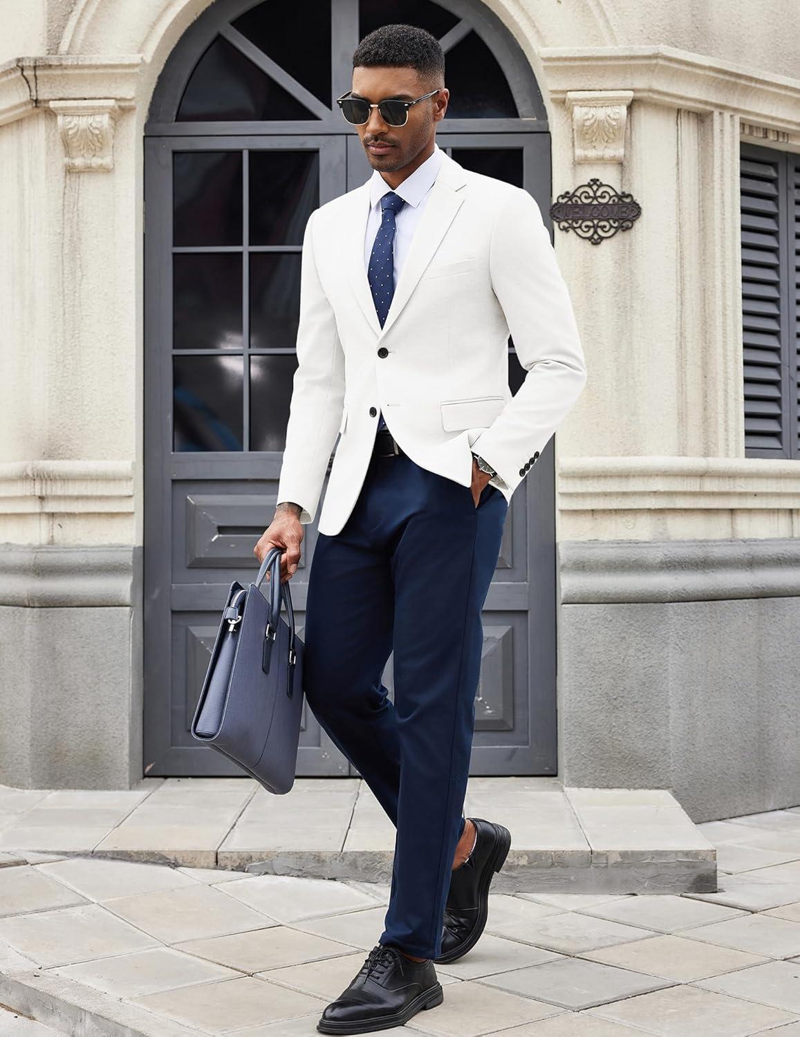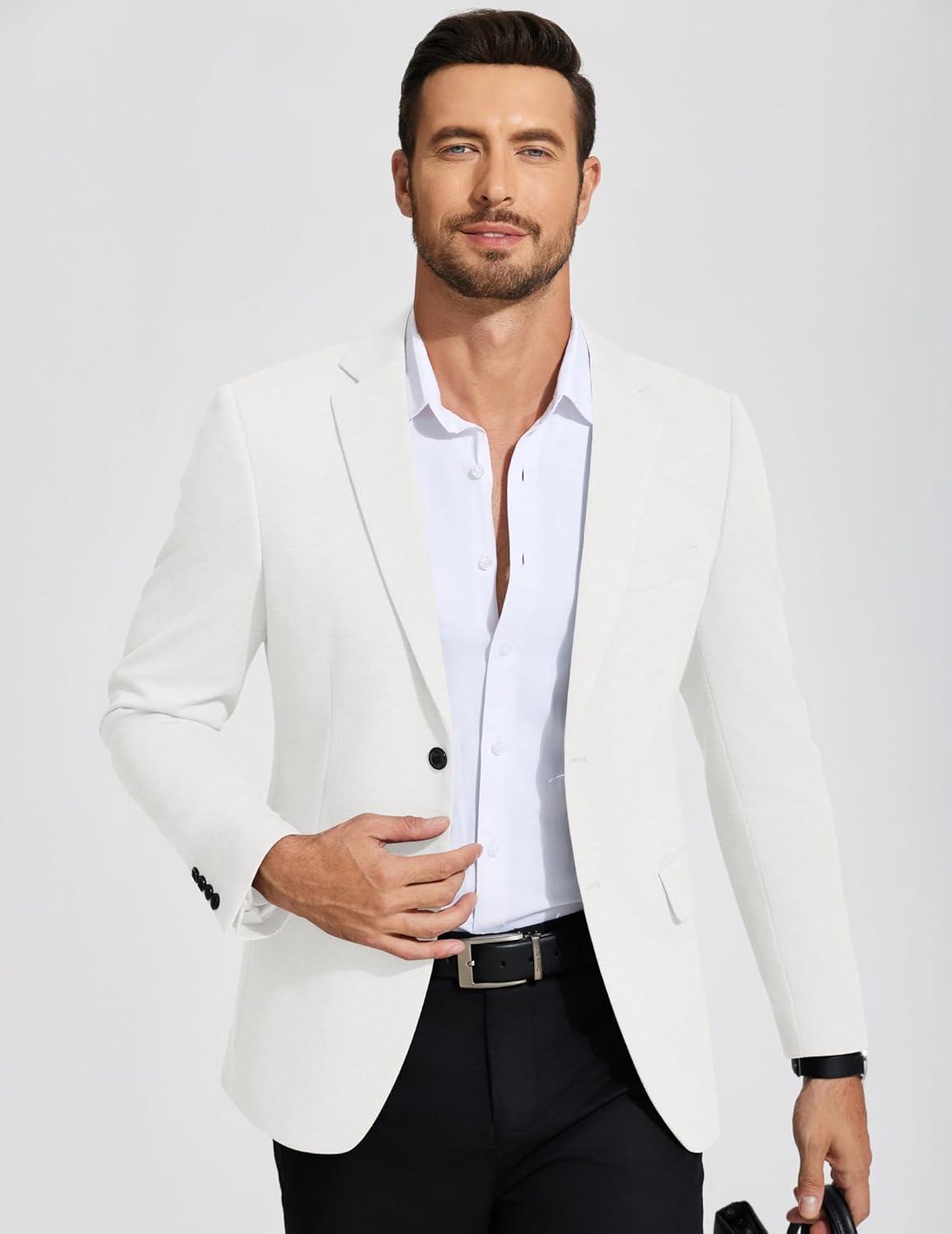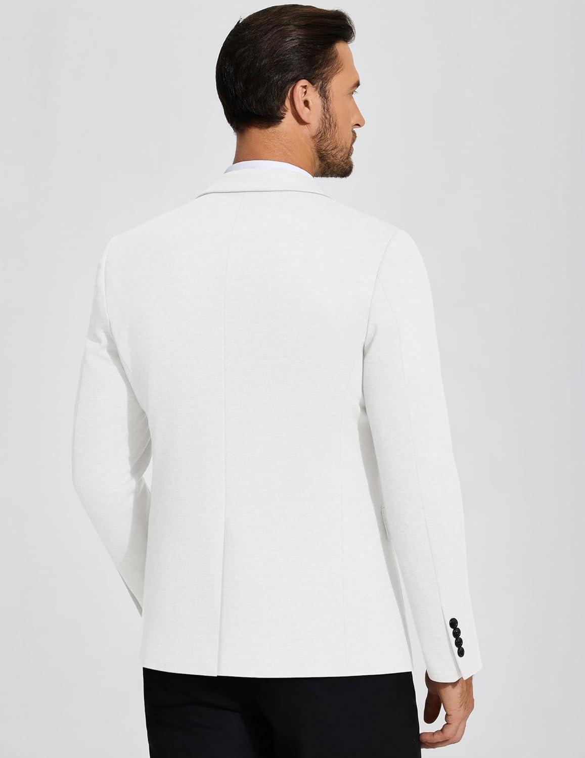 COOFANDY Mens Casual Blazer Knit Sport Coat Lightweight Two Button Suit Jacket(White)