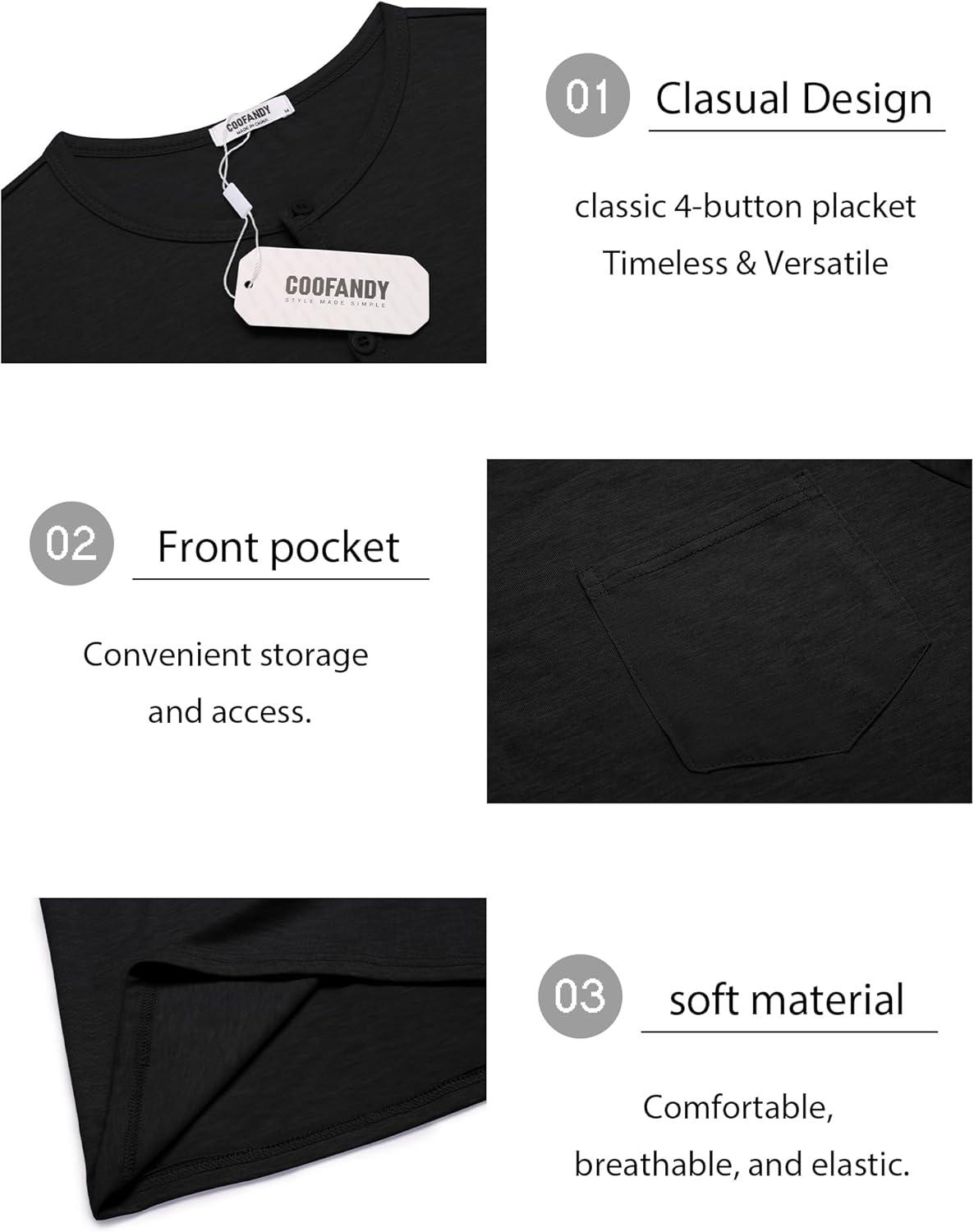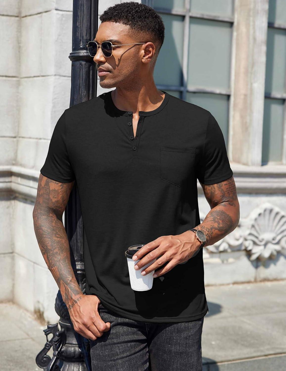 COOFANDY Men Long Sleeve Henley Shirs Casual Basic T Shirts Soild Button Tees with Pockets(Coffee)