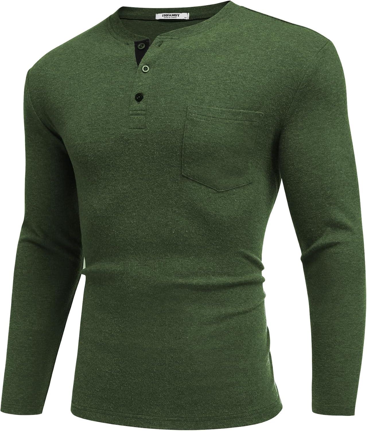 COOFANDY Men Long Sleeve Henley Shirs Casual Basic T Shirts Soild Button Tees with Pockets(Green)