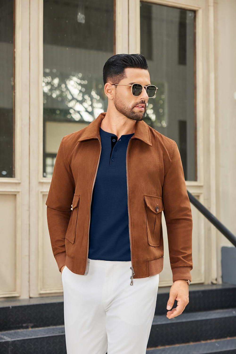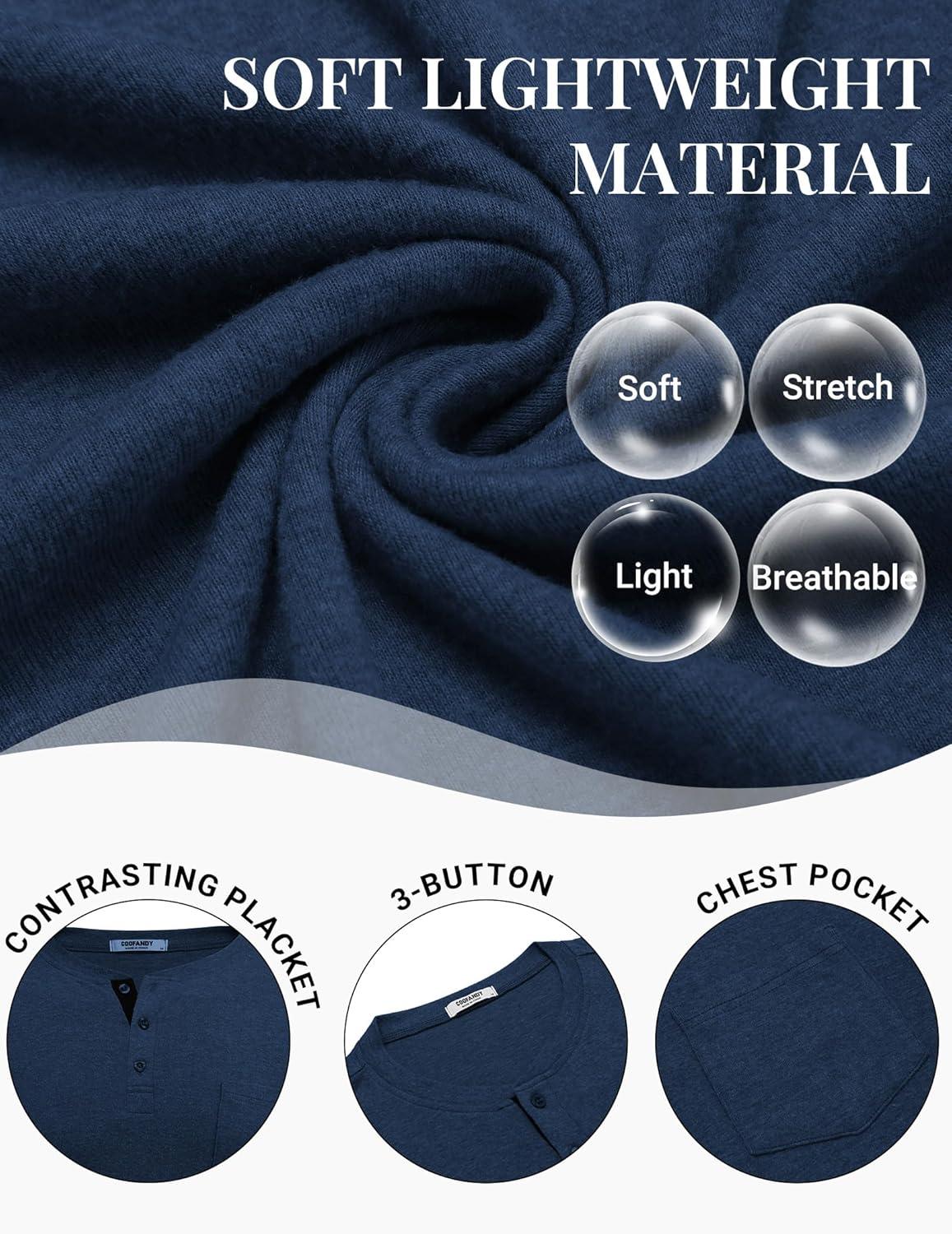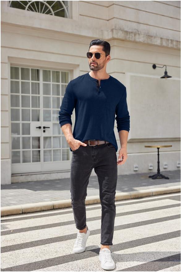 COOFANDY Men Long Sleeve Henley Shirs Casual Basic T Shirts Soild Button Tees with Pockets(Navy Blue)