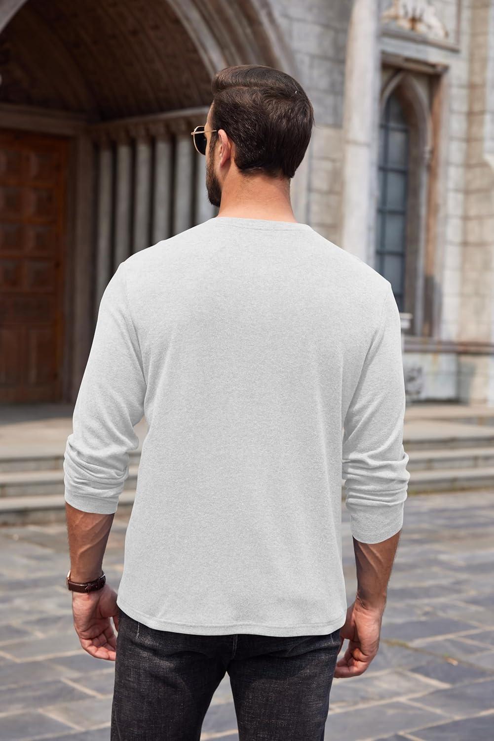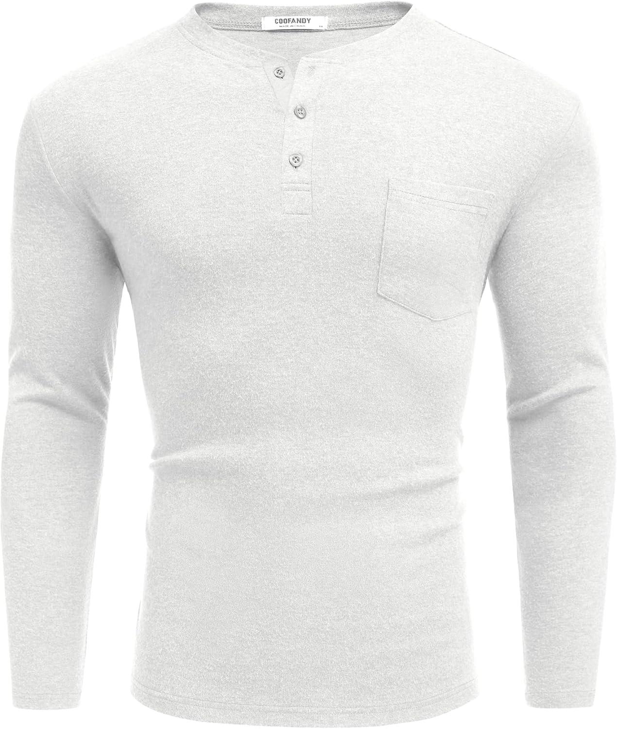 COOFANDY Men Long Sleeve Henley Shirs Casual Basic T Shirts Soild Button Tees with Pockets(White)