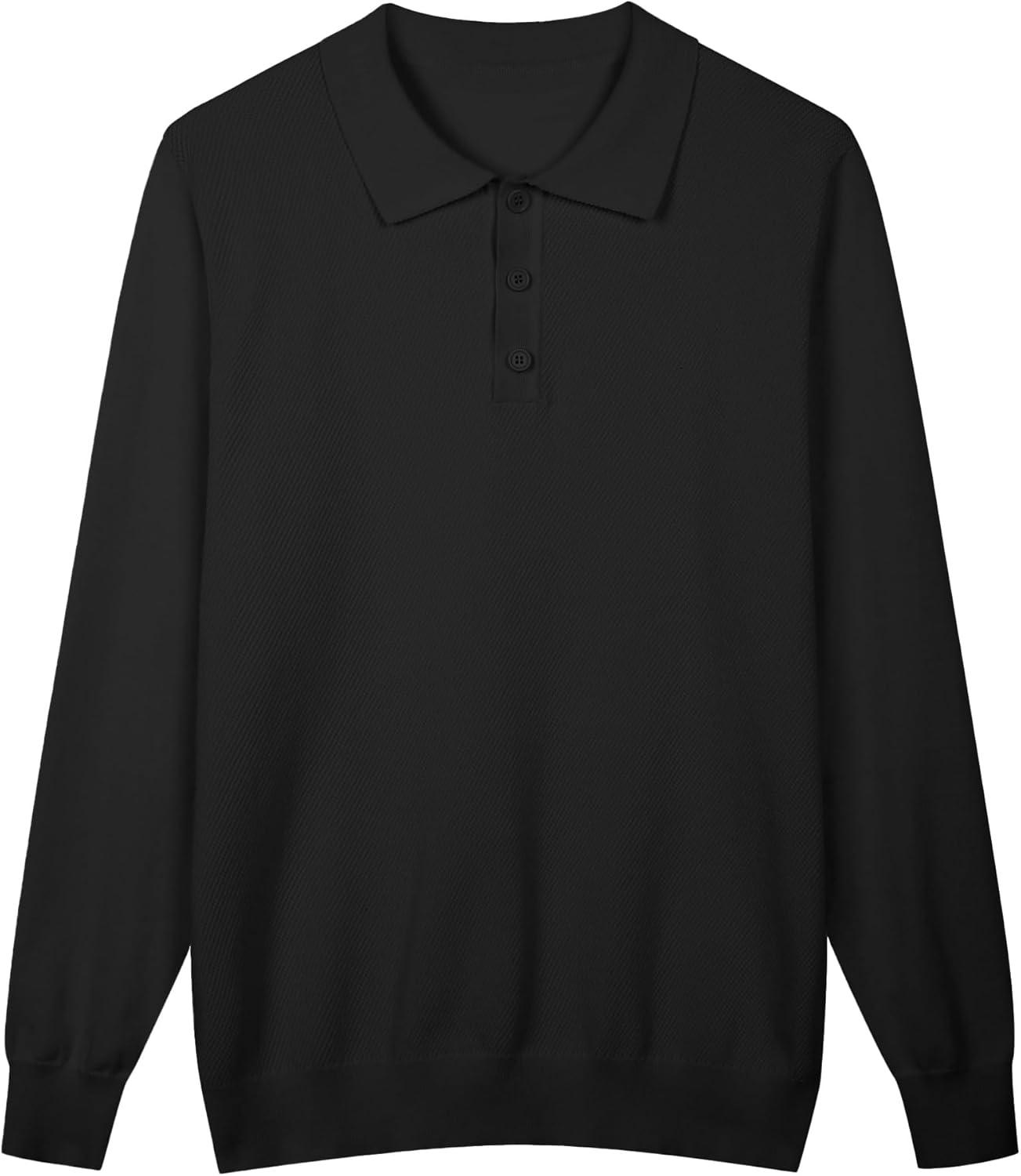 COOFANDY Men Long Sleeve Polo Sweater Knitted Polo Slim Fit Waffle Collared Pullover Sweater(Black)