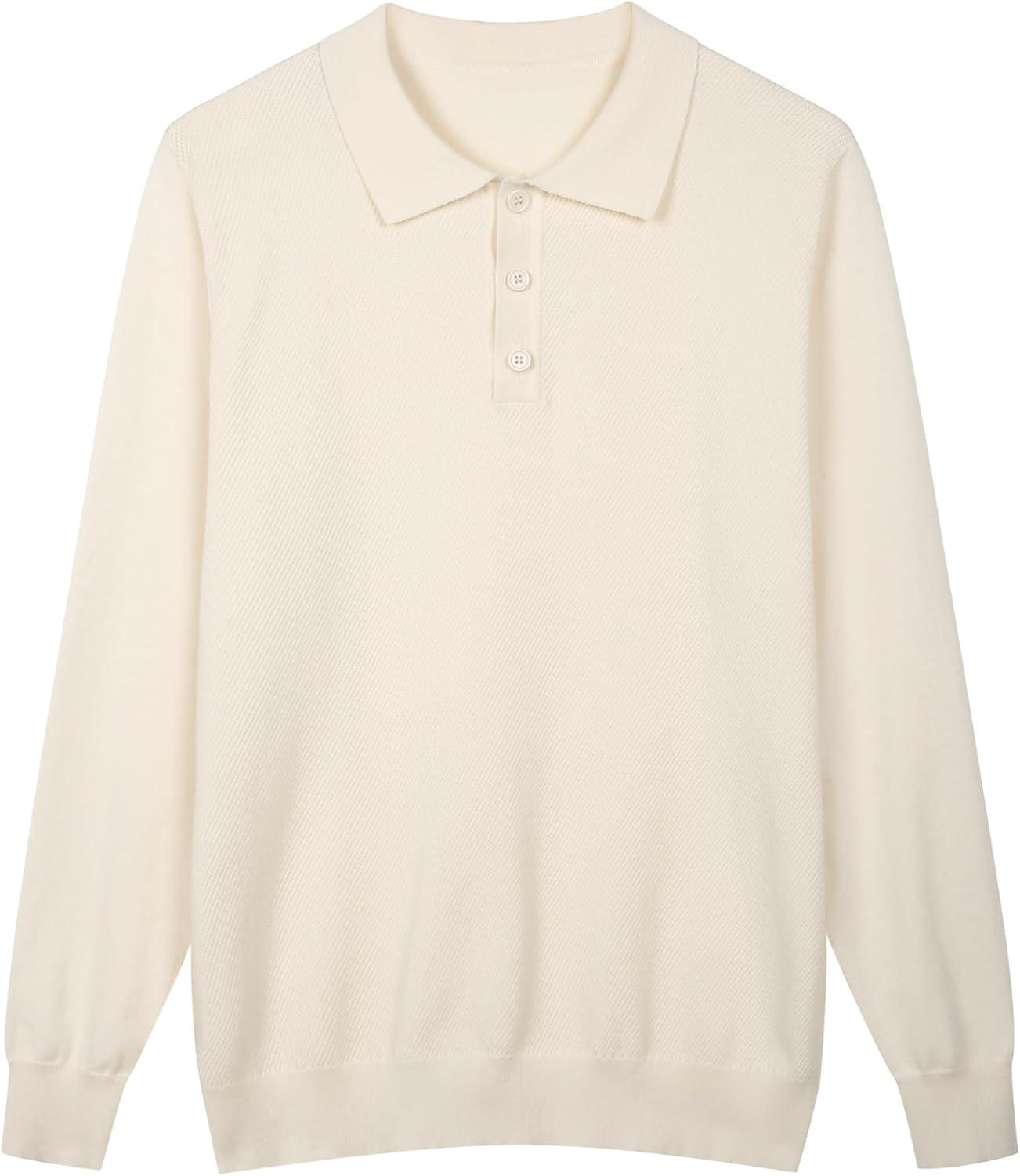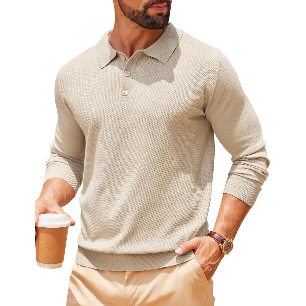 COOFANDY Men Long Sleeve Polo Sweater Knitted Polo Slim Fit Waffle Collared Pullover Sweater(Champagne)