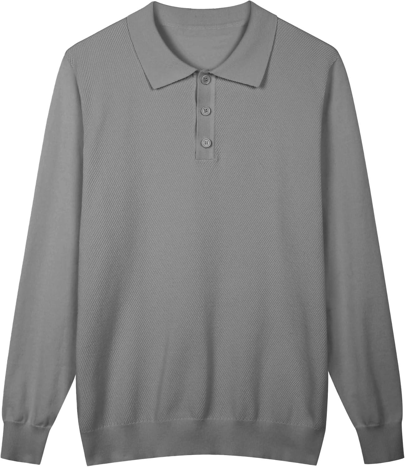 COOFANDY Men Long Sleeve Polo Sweater Knitted Polo Slim Fit Waffle Collared Pullover Sweater(Grey)