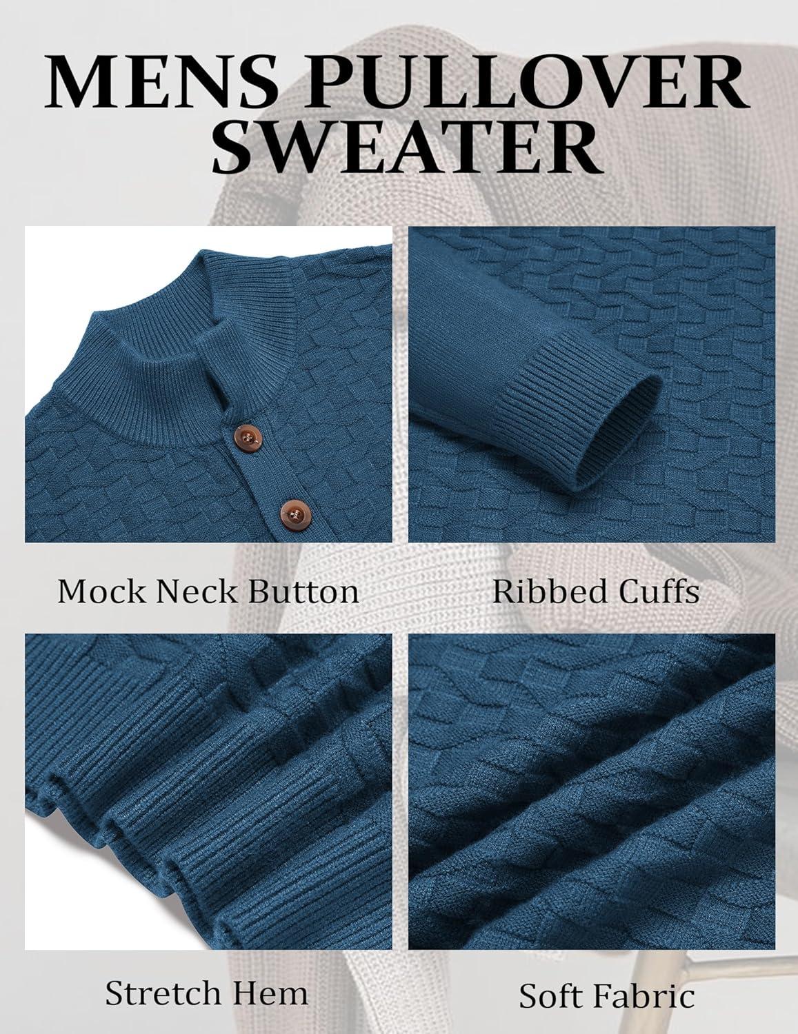 COOFANDY Men Mock Neck Button Sweater Casual Knitted Sweaters Fashion Henley Sweater(Deep Blue)