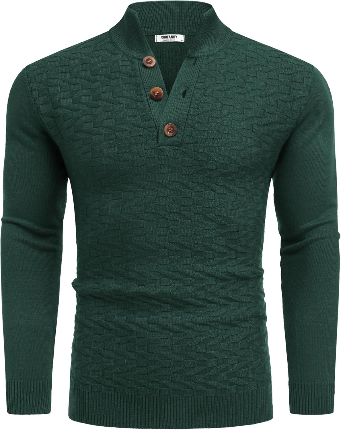 COOFANDY Men Mock Neck Button Sweater Casual Knitted Sweaters Fashion Henley Sweater(Green)