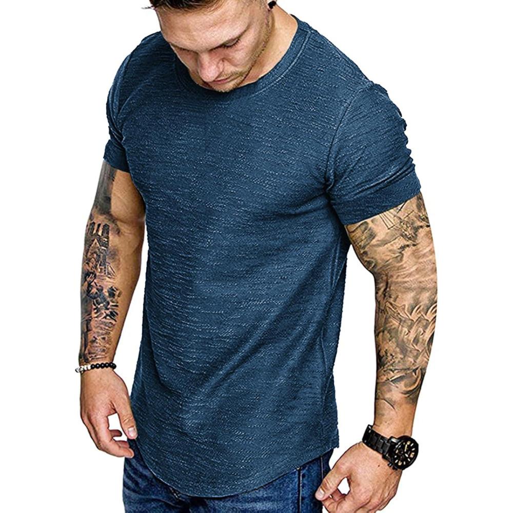 COOFANDY Men Muscle Workout T Shirt Gym Bodybuilding Active Short Sleeve Tee Top Black(One Piece- Dark Blue)