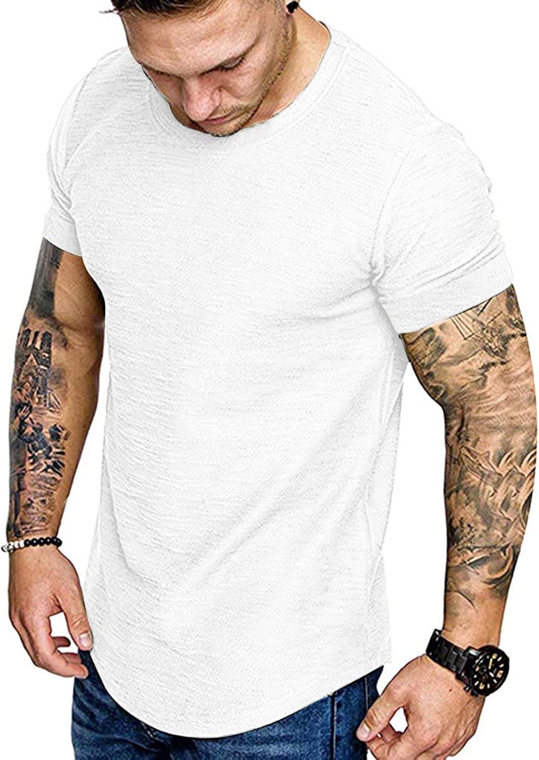 COOFANDY Men Muscle Workout T Shirt Gym Bodybuilding Active Short Sleeve Tee Top Black(Two Pack- White/Grey)