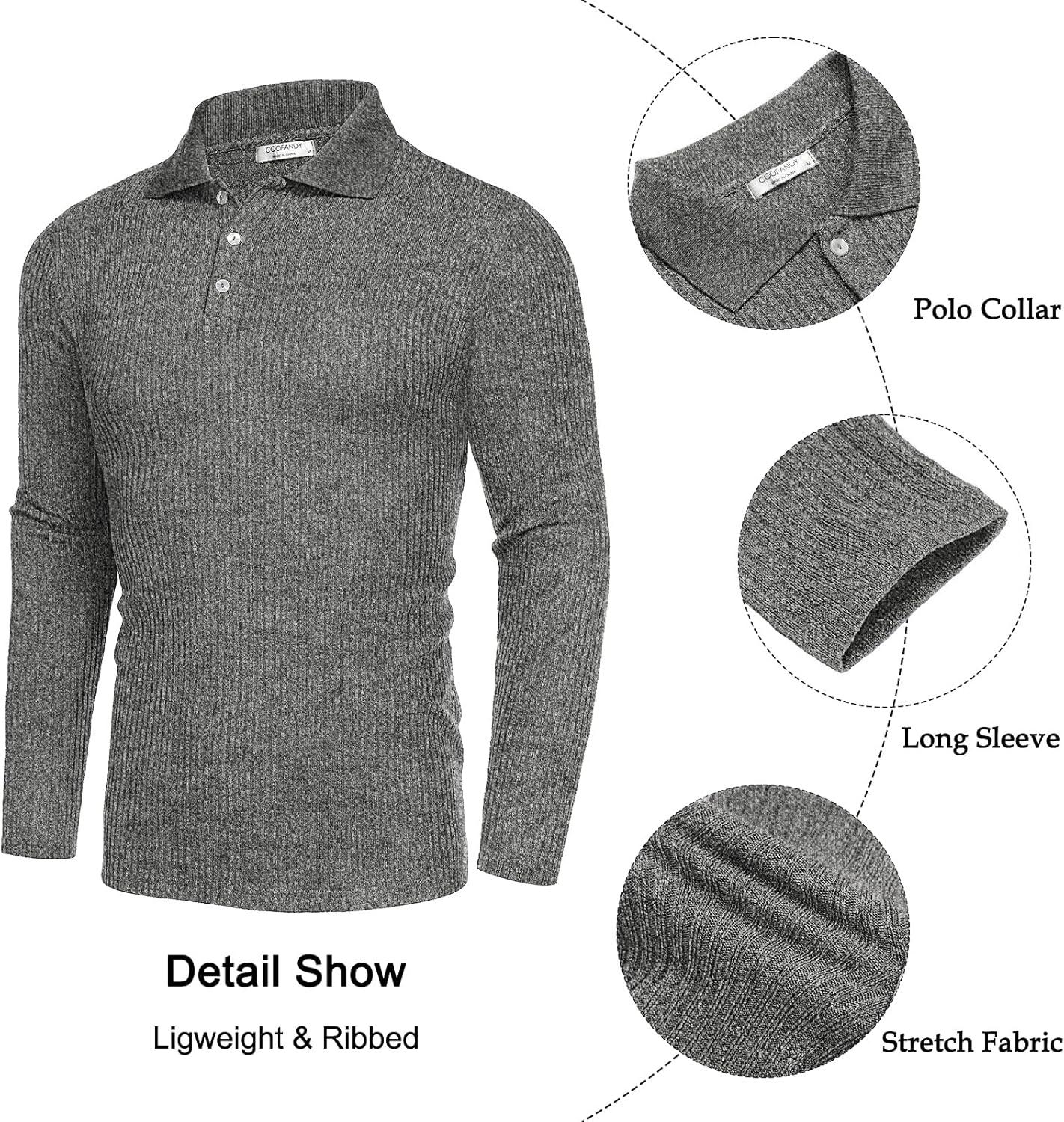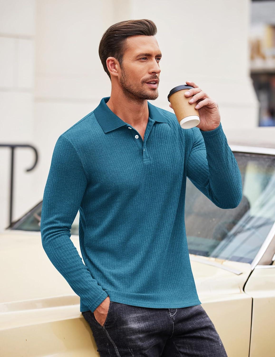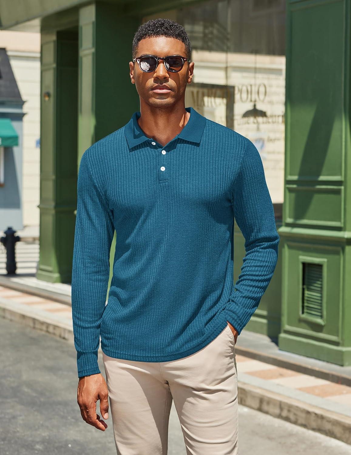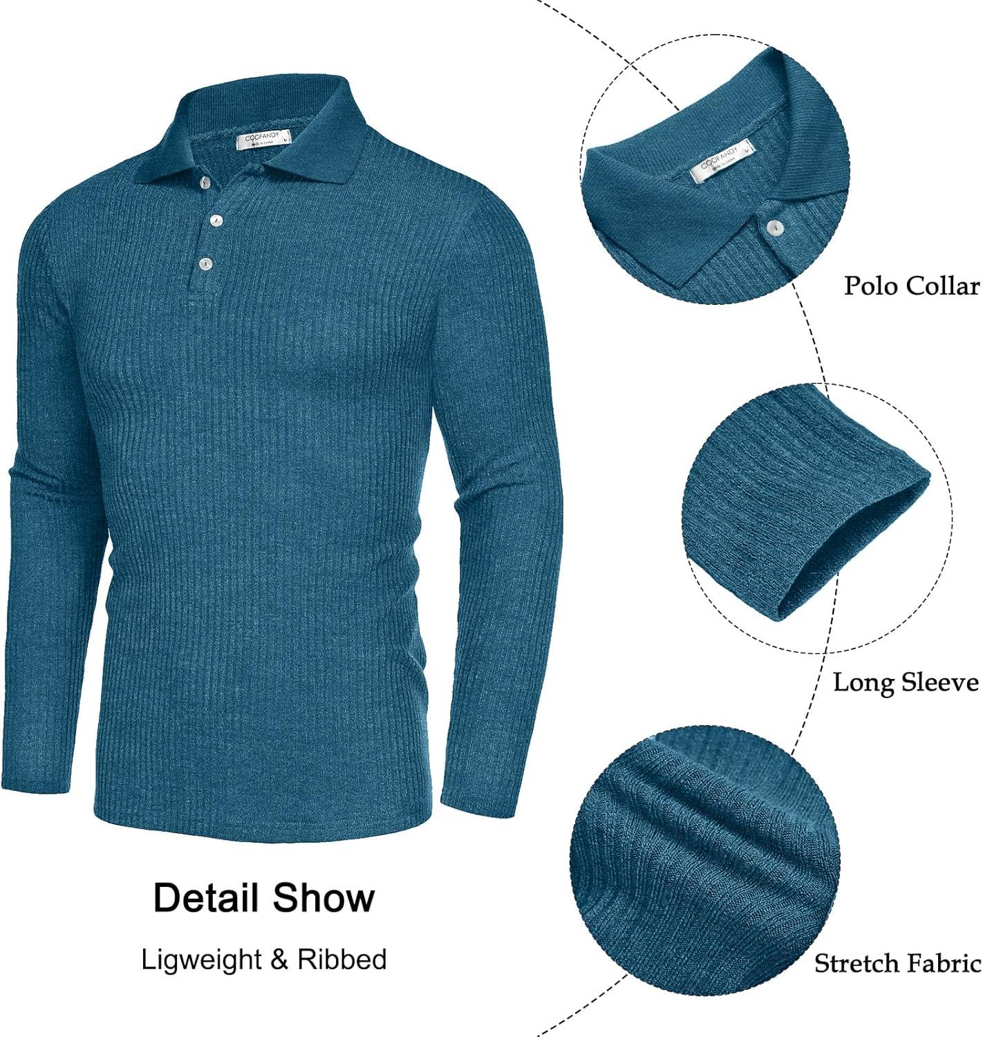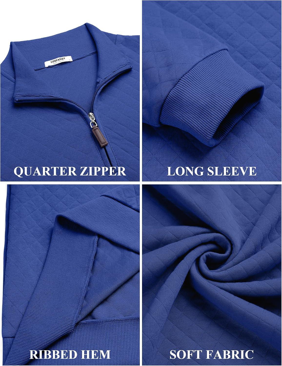 COOFANDY Men Quarter Zip Pullover Long Sleeve Quilted Sweatshirt Waffle Casual Collared Sweatshirts Mock Neck Winter Polo(Deep Blue)