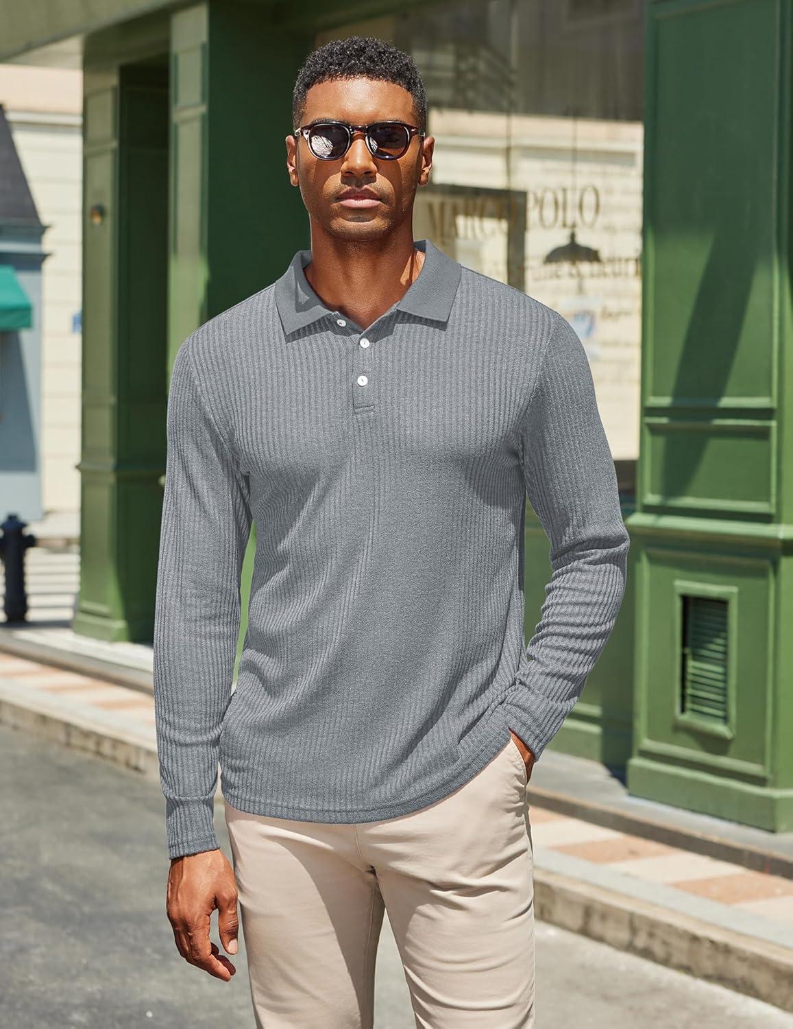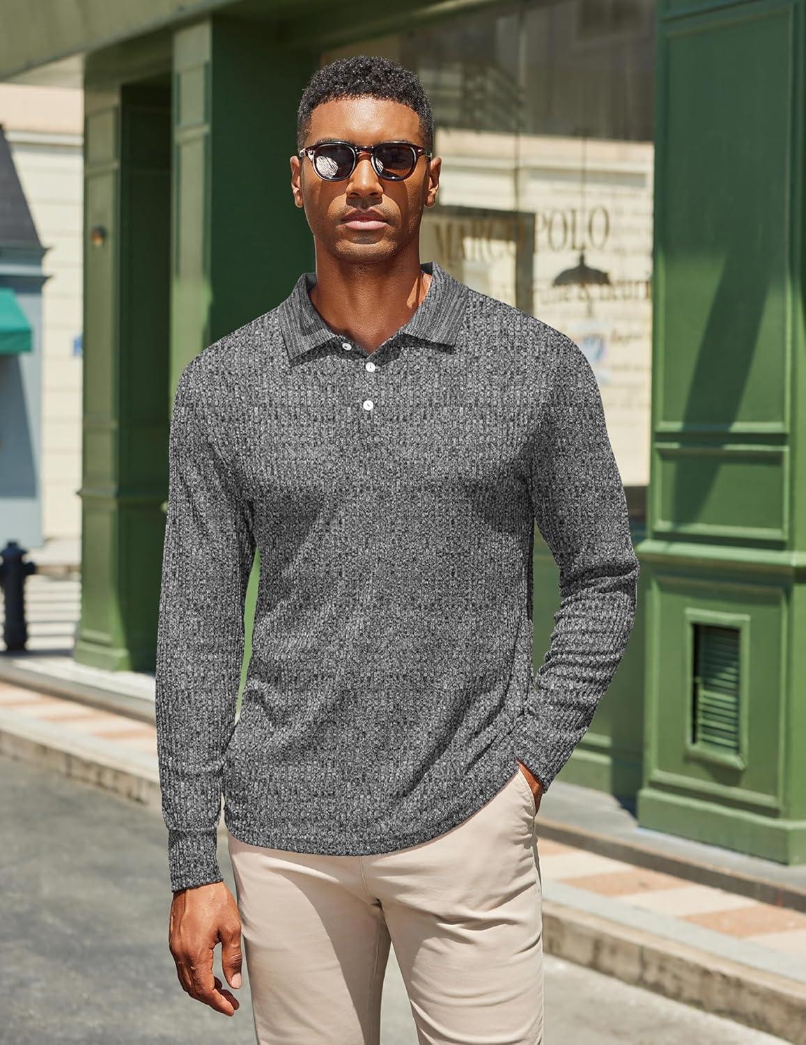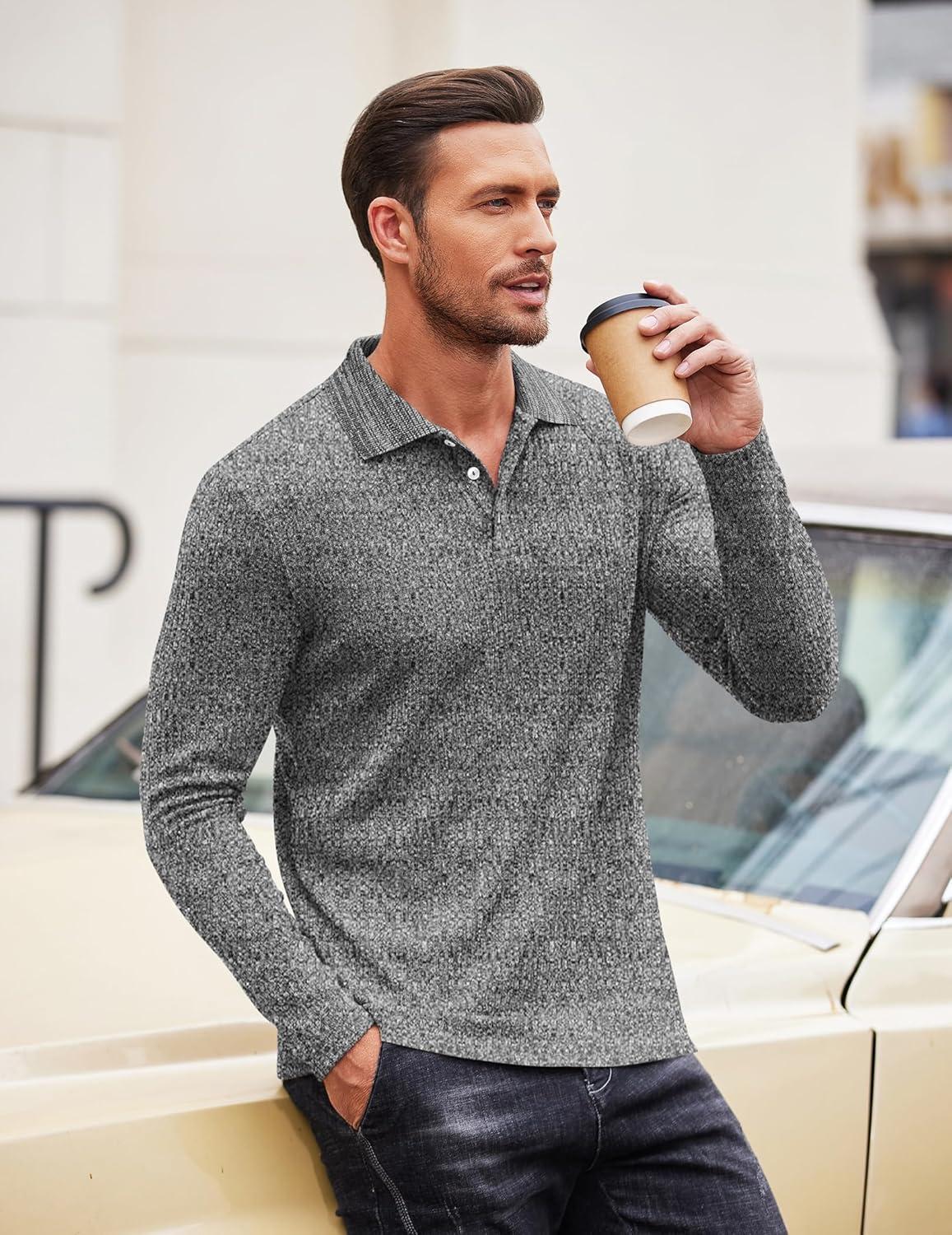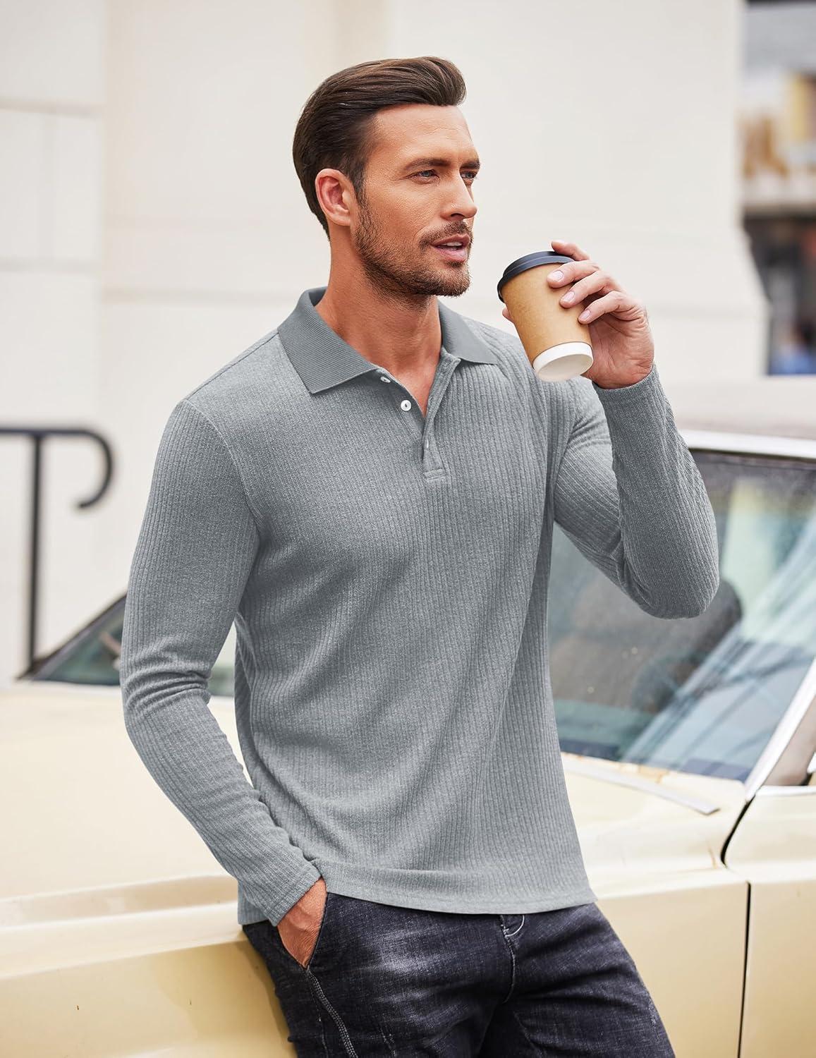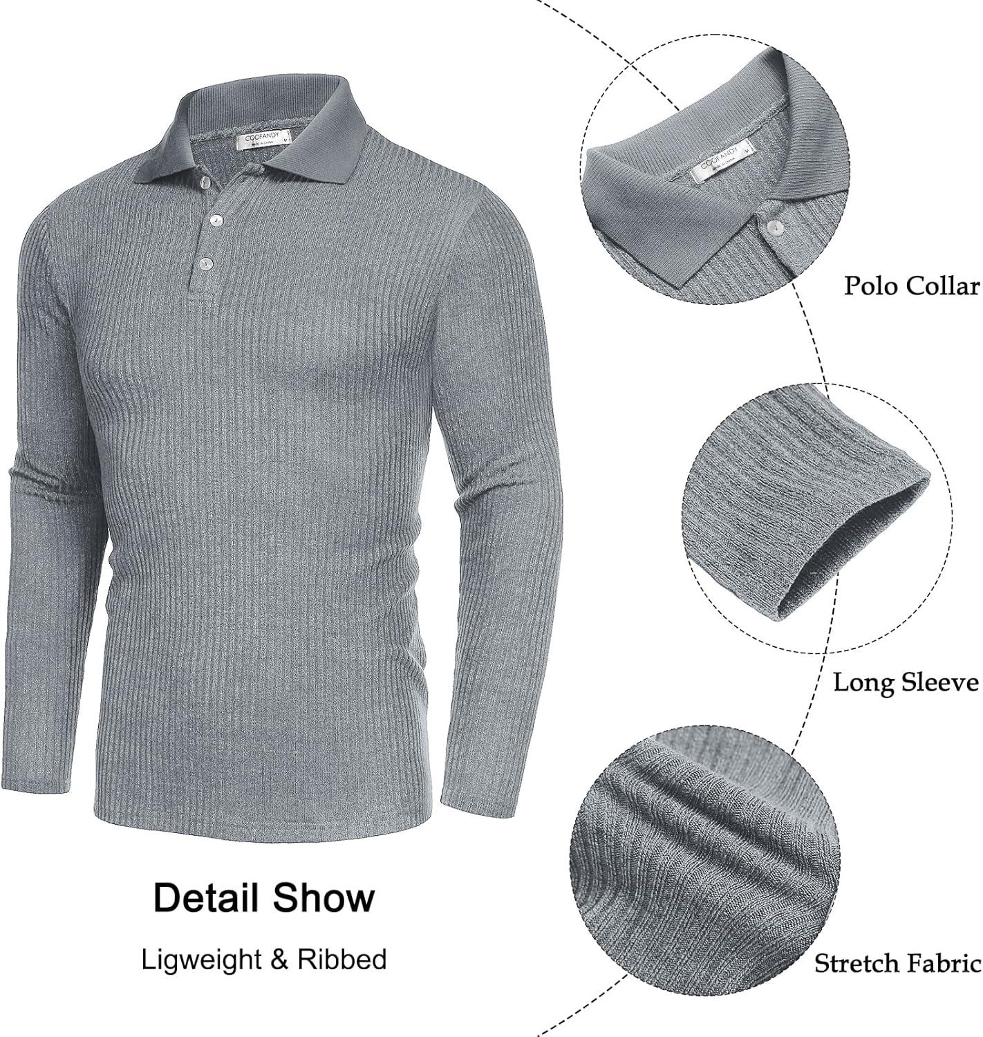 COOFANDY Men Quarter Zip Pullover Long Sleeve Quilted Sweatshirt Waffle Casual Collared Sweatshirts Mock Neck Winter Polo(Deep Blue)