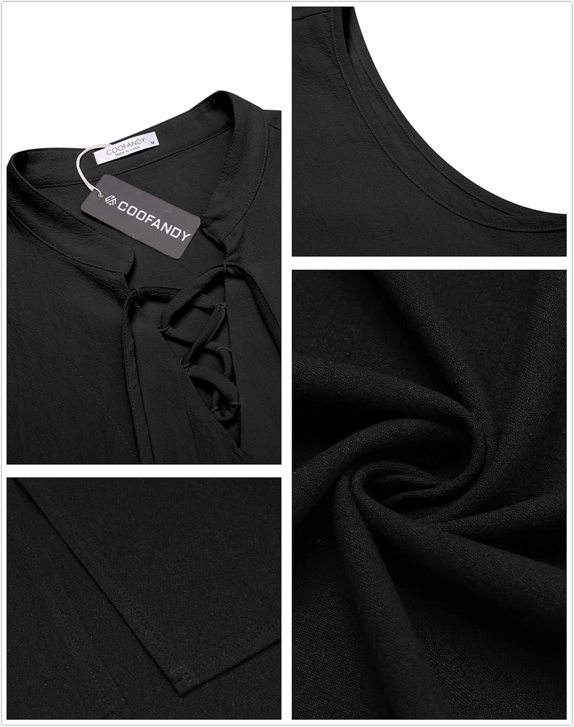 COOFANDY Men Tank Top Cotton Linen Beach Sleeveless Shirt Lace Up Bohemian Hippie Renaissance Pirate Kilt Medieval Tunic(Black)