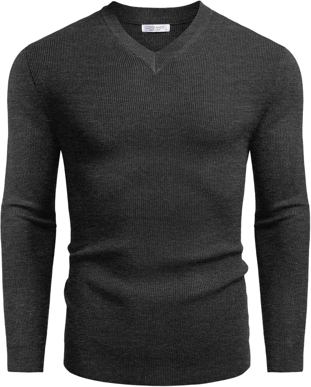 COOFANDY Men V Neck Dress Sweater Knit Long Sleeve Casual Slim Fit Pullover Sweater(Dark Grey)