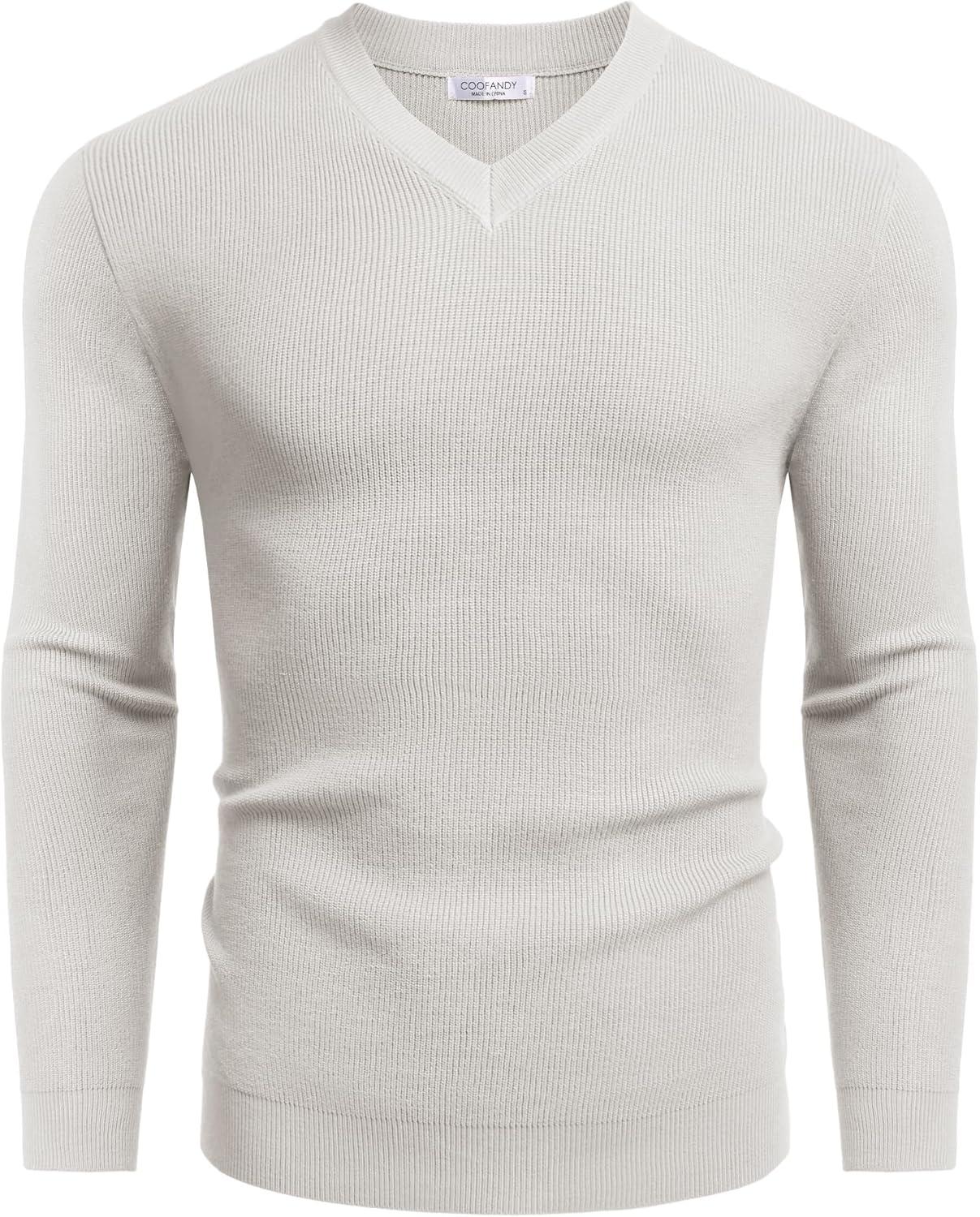 COOFANDY Men V Neck Dress Sweater Knit Long Sleeve Casual Slim Fit Pullover Sweater(White)
