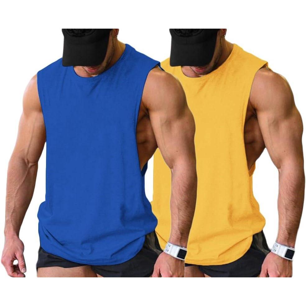 COOFANDY Men Workout Tank Top 2 Pack Gym Bodybuilding Sleeveless Muscle T Shirts(Blueyellow)
