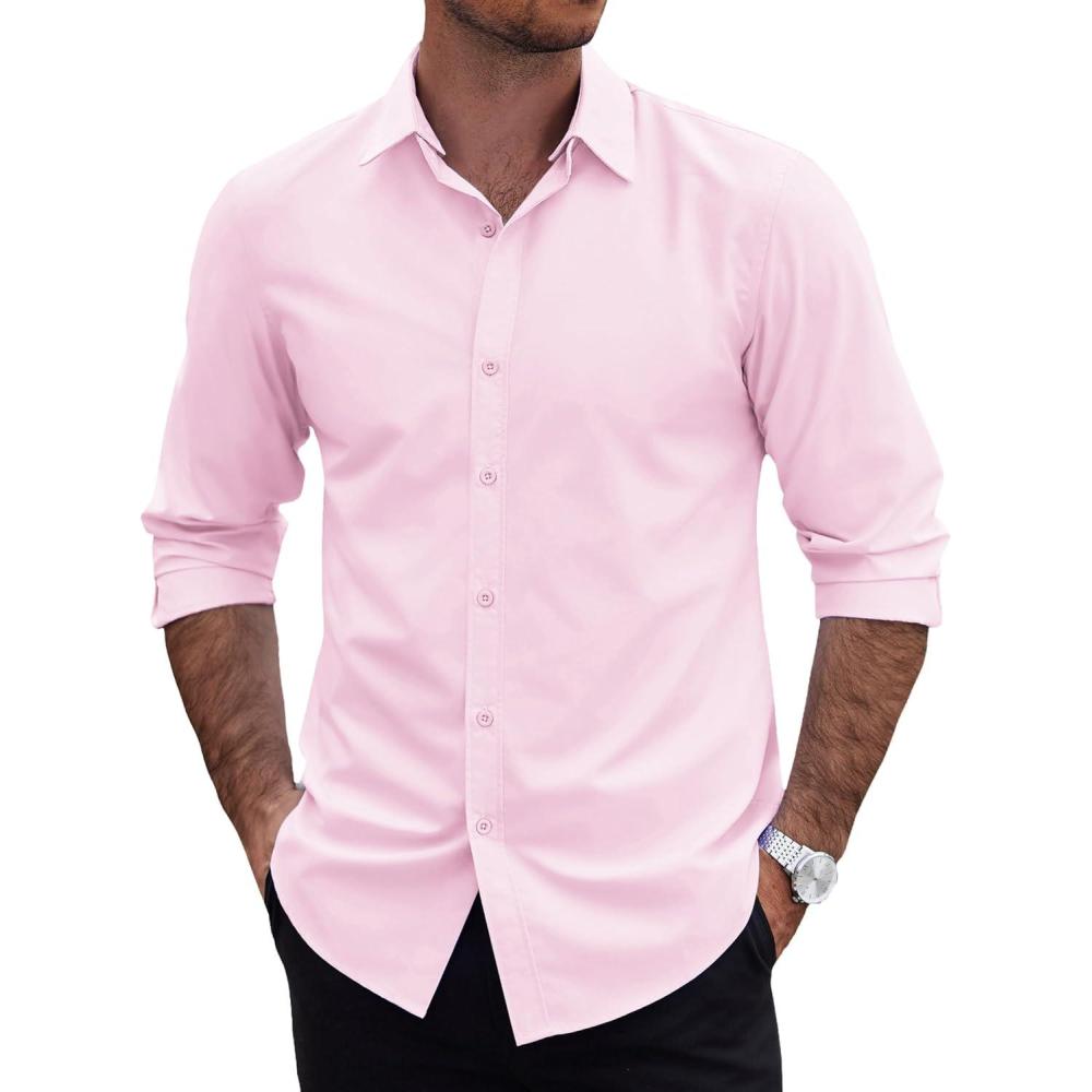 COOFANDY Mens 2-in-1 Dress Shirts Detachable Collar Long Sleeve Wrinkle Free Shirt Business Casual Button Down Shirt(Pink)