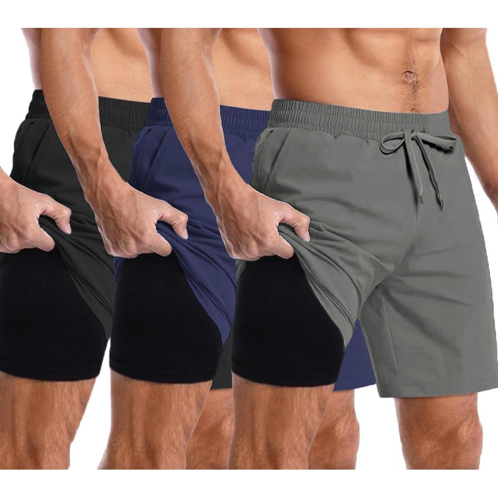COOFANDY Men’s 2 in 1 Running Shorts 2 Pack Athletic Shorts Quick Dry Gym Training Workout Shorts with Pockets(Black/Dark Grey/Navy Blue)